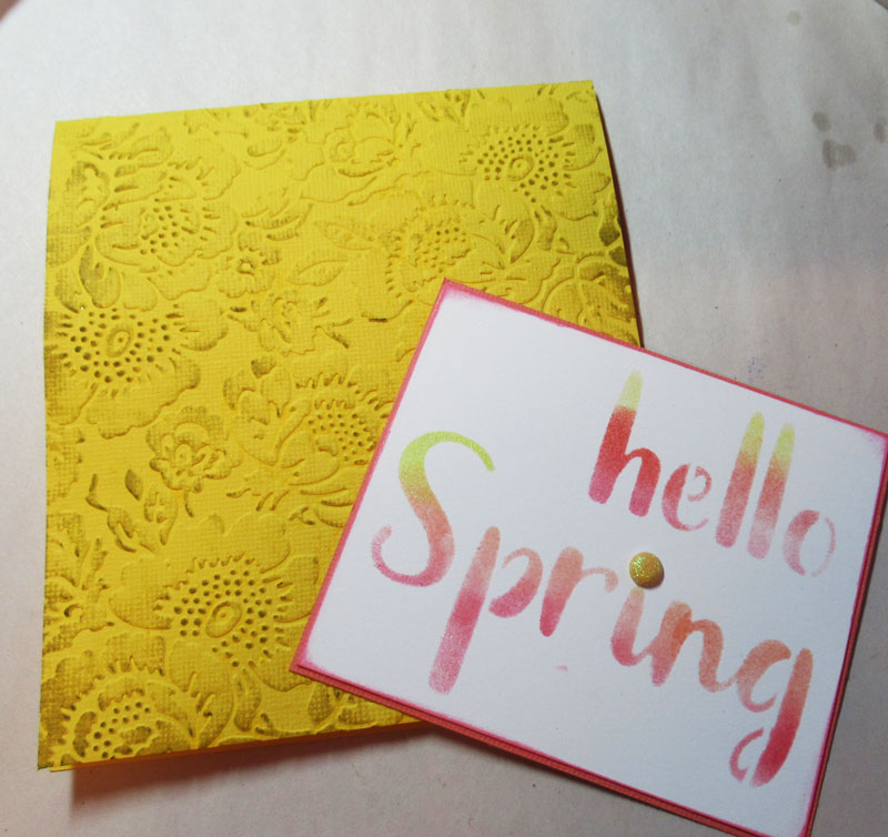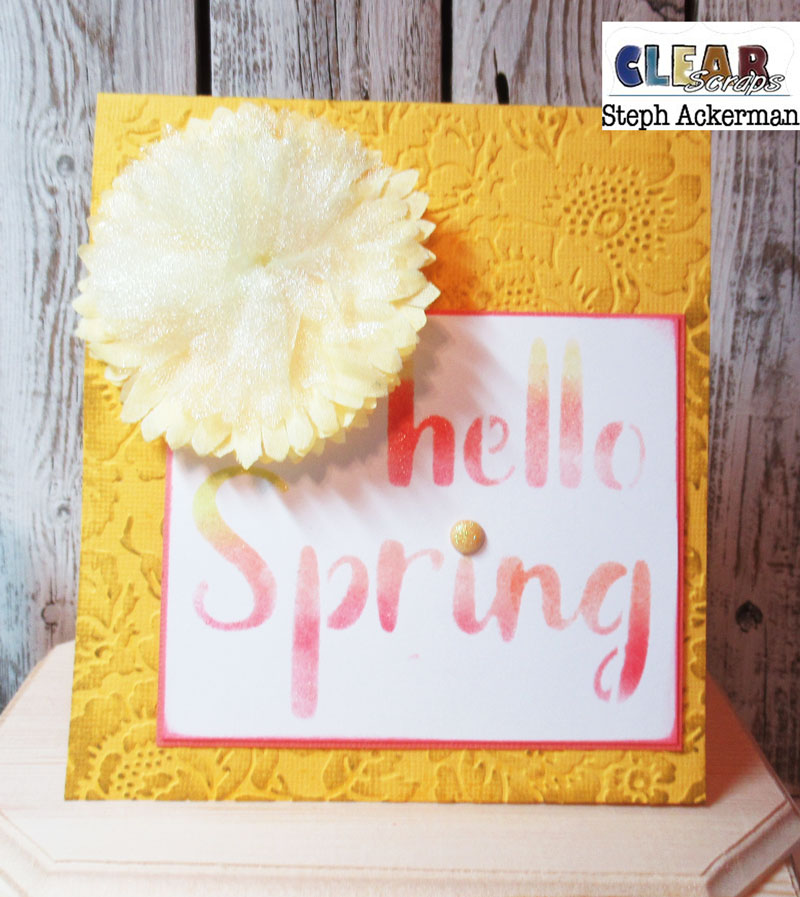 Hi everyone, Steph Ackerman here today with a set of Spring cards using the 4" x 6" Hello Spring Stencil.