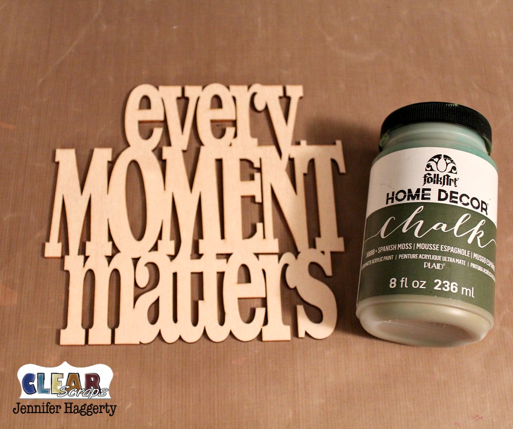 Next, I painted the Every Moment Matters XL Script Wood Quote with chalk paint in green. Again, I did not worry about covering ever surface of the wood.