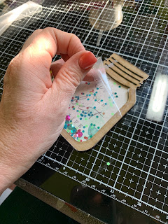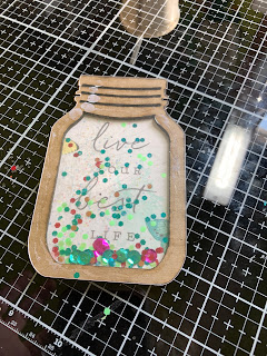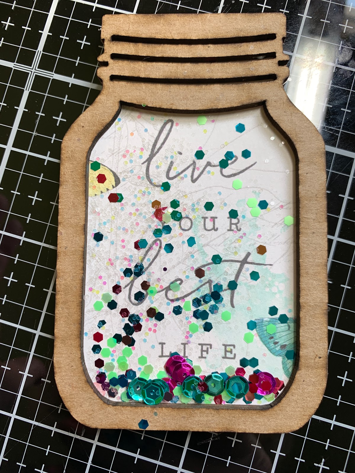 Add to shaker and finish off with a bow. I hope you are inspired to get creative with Clear Scraps!