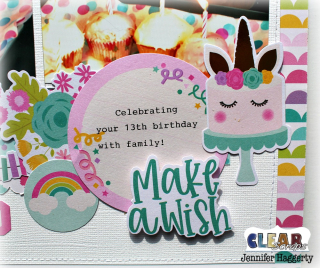Hello friends! Happy Saturday! It's Jennifer here to share a layout I created with one of the new Chipboard Embellishment Shapes! They make for a great accent on a page or front of a mini album! I had these cute photos of my niece from her recent birthday and used the Birthday Cake Chipboard Embellishment Shape.