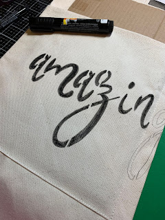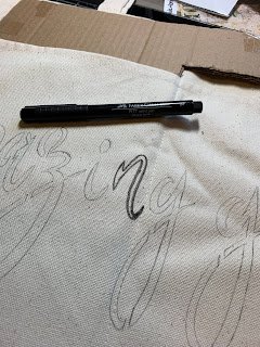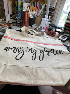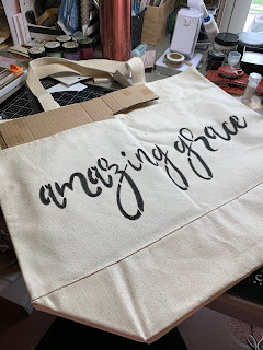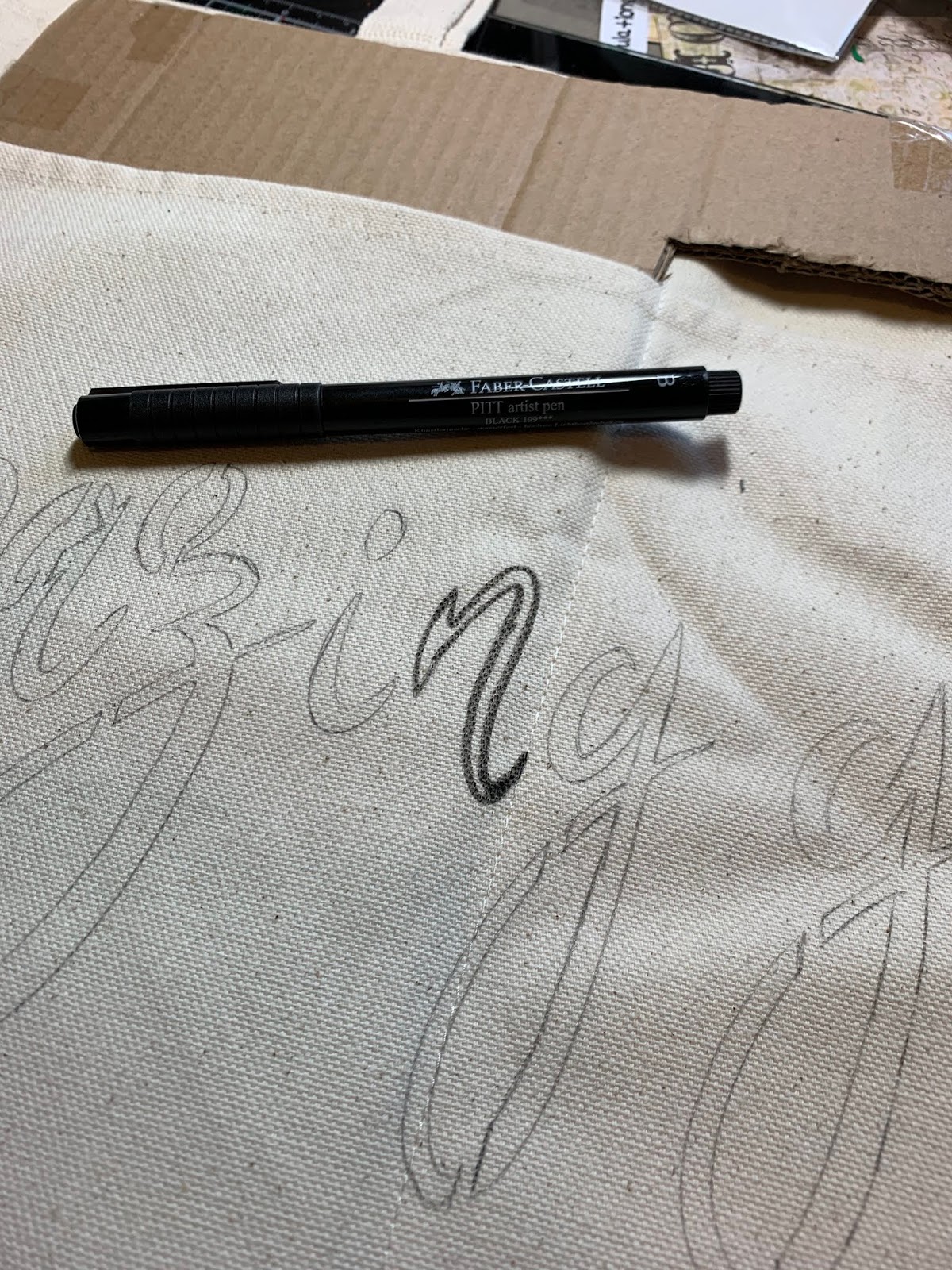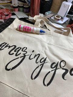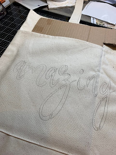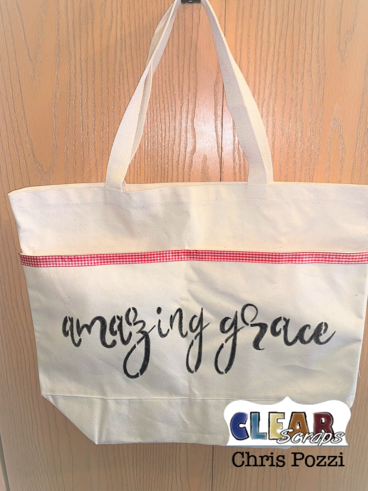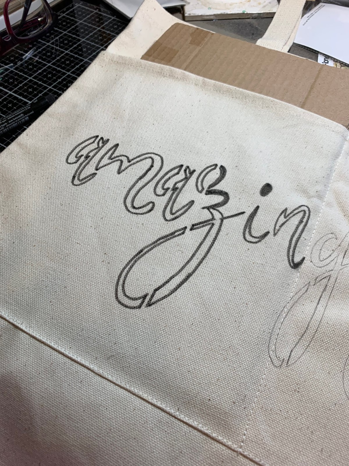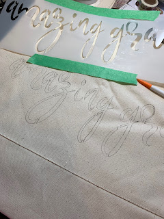 I started by tracing Clear Scraps Amazing Grace Stencil on to my canvas bag.