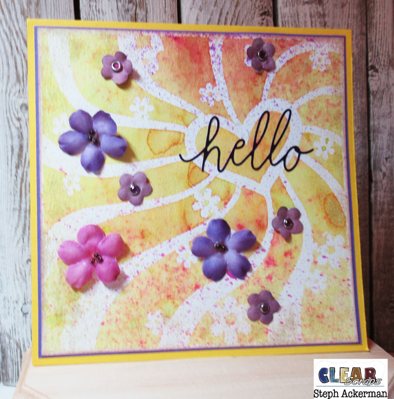 Start by creating a background using spray inks and water on a sheet of white cardstock.