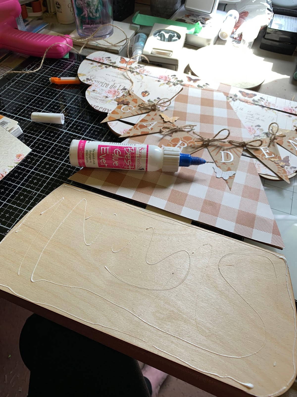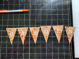 Add GARDEN letters onto banners. Punch holes in each banner and tie together with jute.