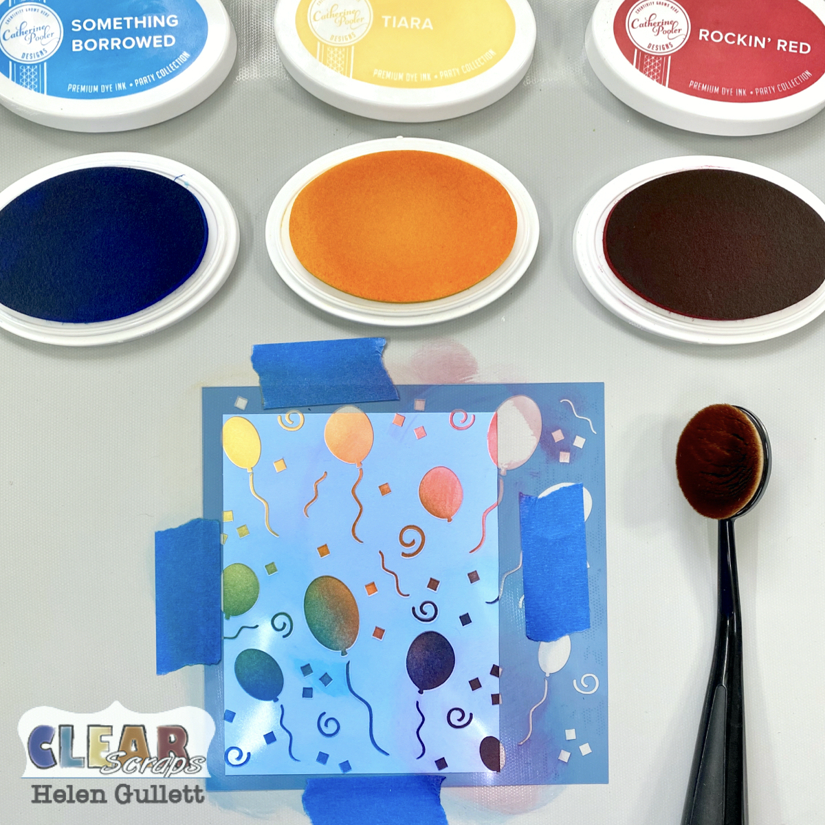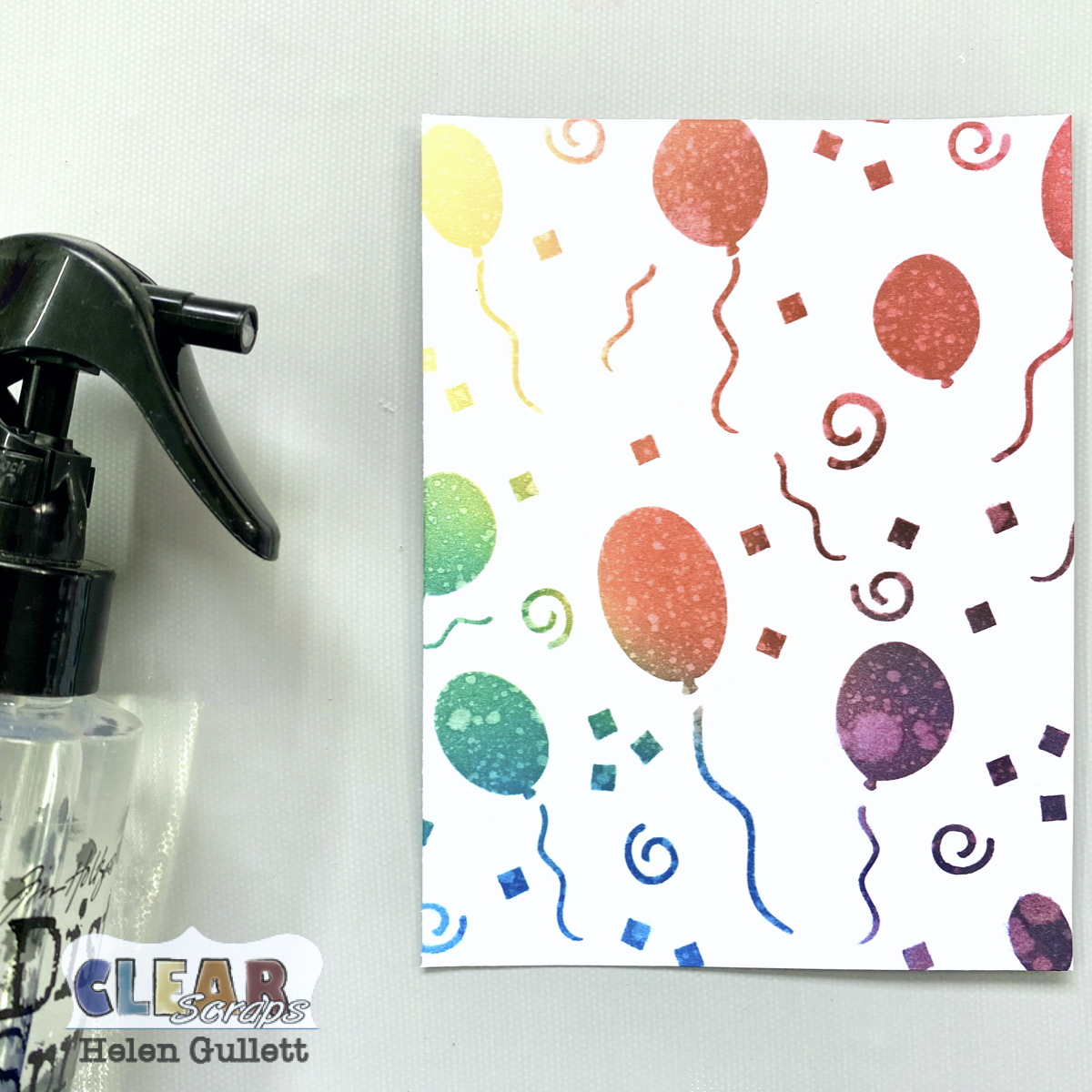 Hello everyone… Helen is here. I love creating background for my cards and using stencil is one of my favorite techniques. And today, I would like to share these two fun, rainbow birthday cards.