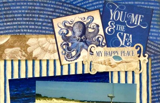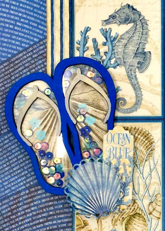 foam tape, adhesive, walnut stain distress ink, sequins, beads.