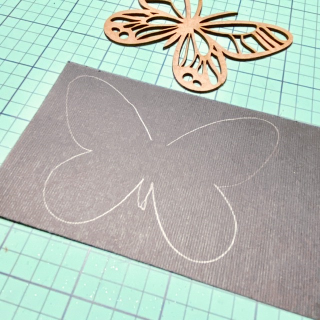 Cut out the butterfly (you may have to retrace around the butterfly if you obliterated your first tracing like I did)…