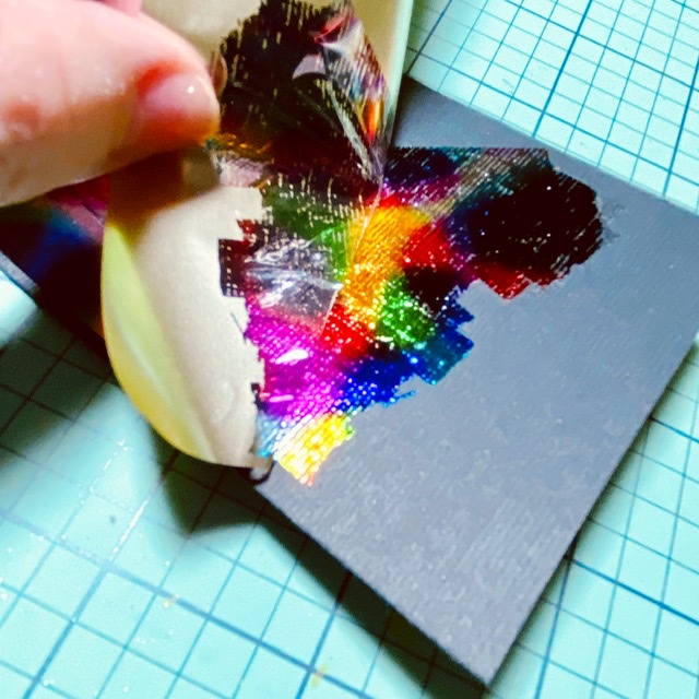 Lay a sheet of foil transfer paper over the adhesive and rub with your finger to transfer the foil…