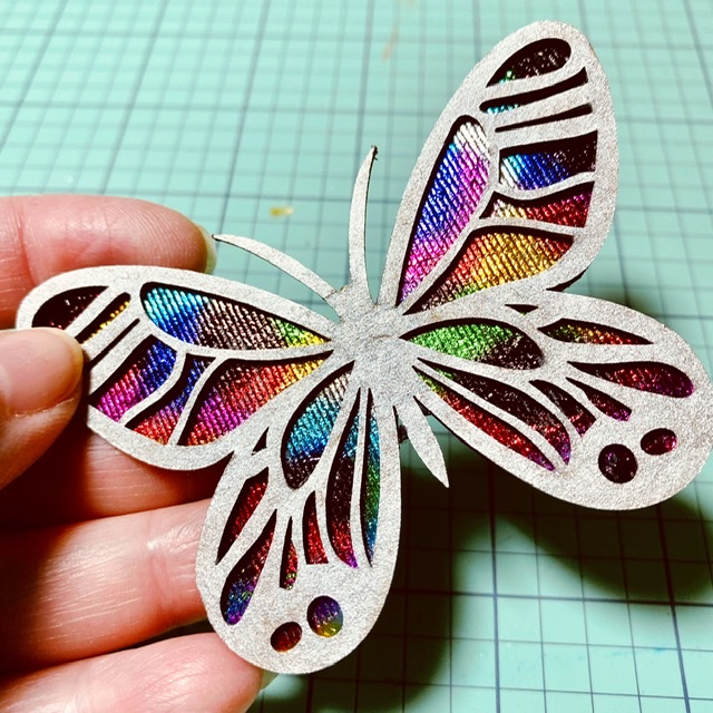 I thought that the Fancy Butterfly Chipboard Shape would look gorgeous with a foil underlay to fill in the wings.