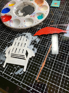 Adhere umbrella pole and then add chipboard pieces with foam tape over top of the pole. (add foam tape on either side of the chipboard pieces so that pole is behind the other pieces.)