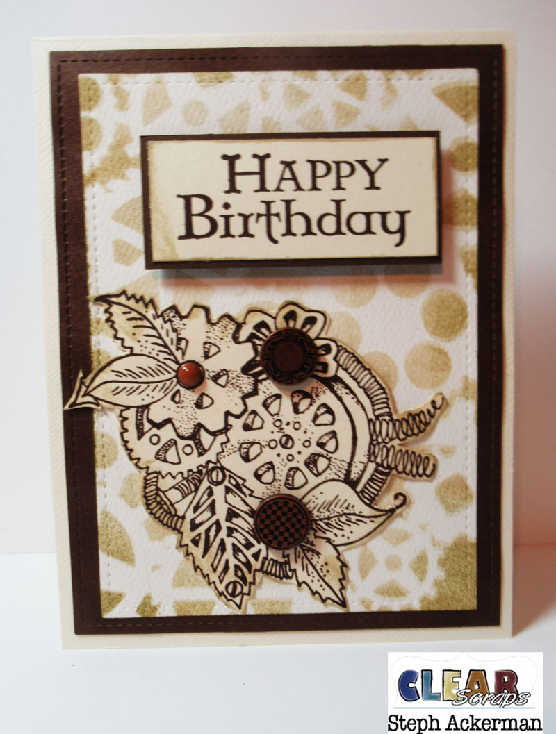 I used the Gears Stencil with assorted inks to create backgrounds for my cards.