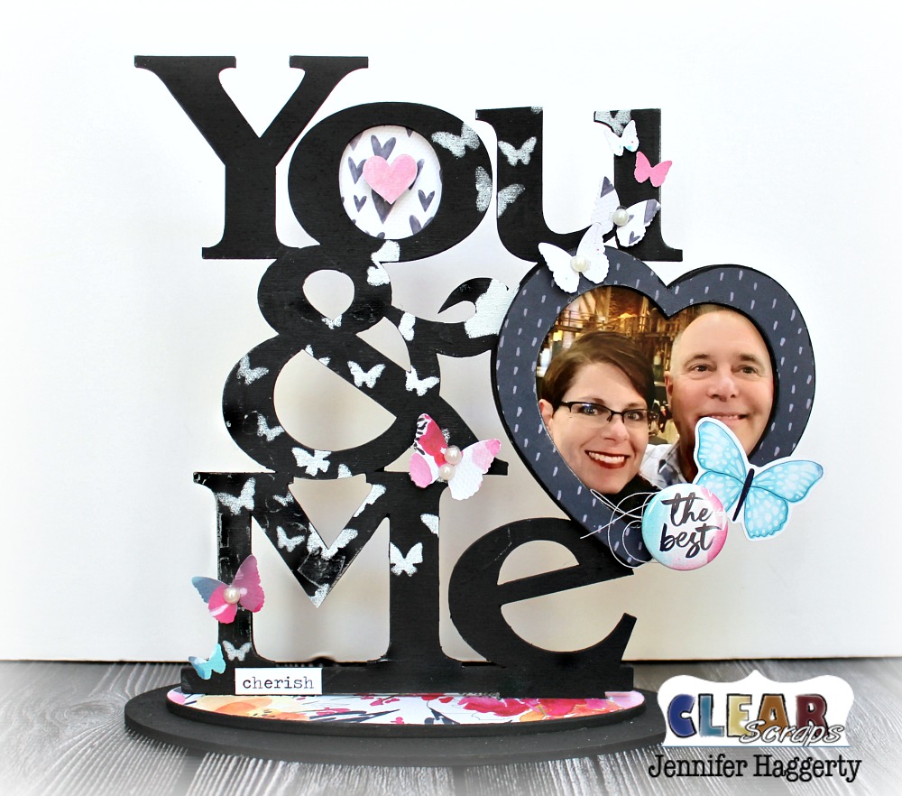 Hello! It's Jennifer on the blog today to share one of the new Wood Desktop Frames! If you haven't had a chance to play with one of these yet, you must! They are a lot of fun to assemble and make for a unique home decor piece! Even better as a gift! Today, I am featuring the You & Me Wood Desktop Frame which has a cute cut out heart frame perfect for a favorite photo!