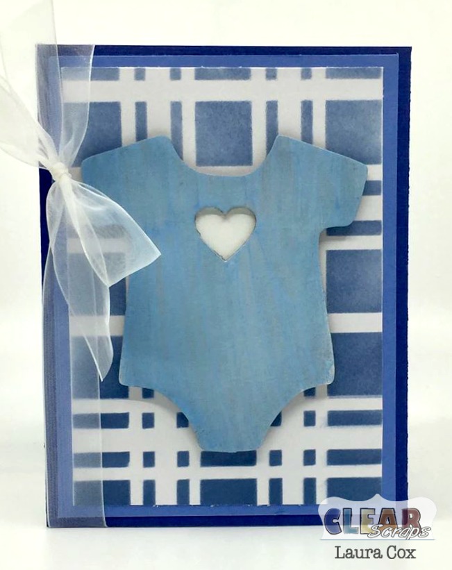 Clear Scraps: 4×6 Plaid Stencil, Onesie Chipboard Embellishment