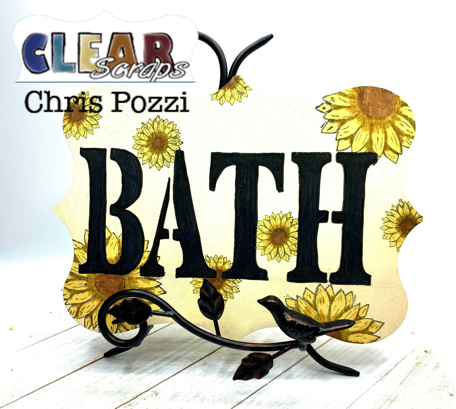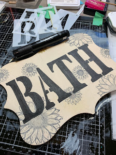 Good Morning! Chris here and today I am excited to share my latest project with you! Who doesn't love sunflowers? Each year I plant a few rows of sunflowers in varying heights and colors between my neighbors and our fence-line. We spend hours watching the birds and bees flying in and out of the flowers! SO I decided to bring a few sunflowers indoors by creating this Pallet sign for my bath.