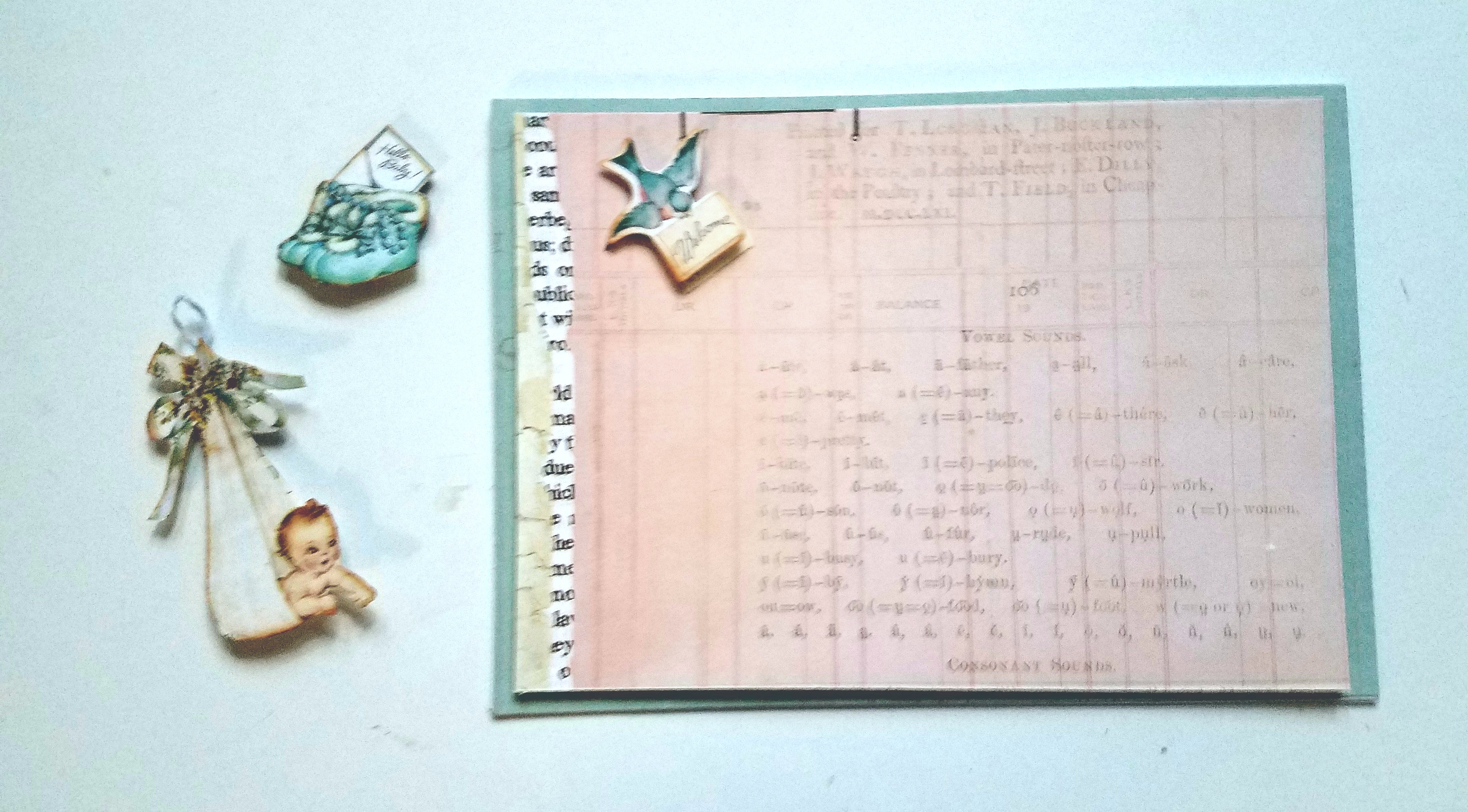 The first thing I did was assemble the shaker. I made some of my own confetti from the matching scraps of paper I has left over. I used a regular paper hole punch to make my confetti. If you have a baby design punch that would be fun to use also. I added some sequins, Doodlebug shaped flower/square pieces and also added some pastel colored beads! The possibilities are endless!