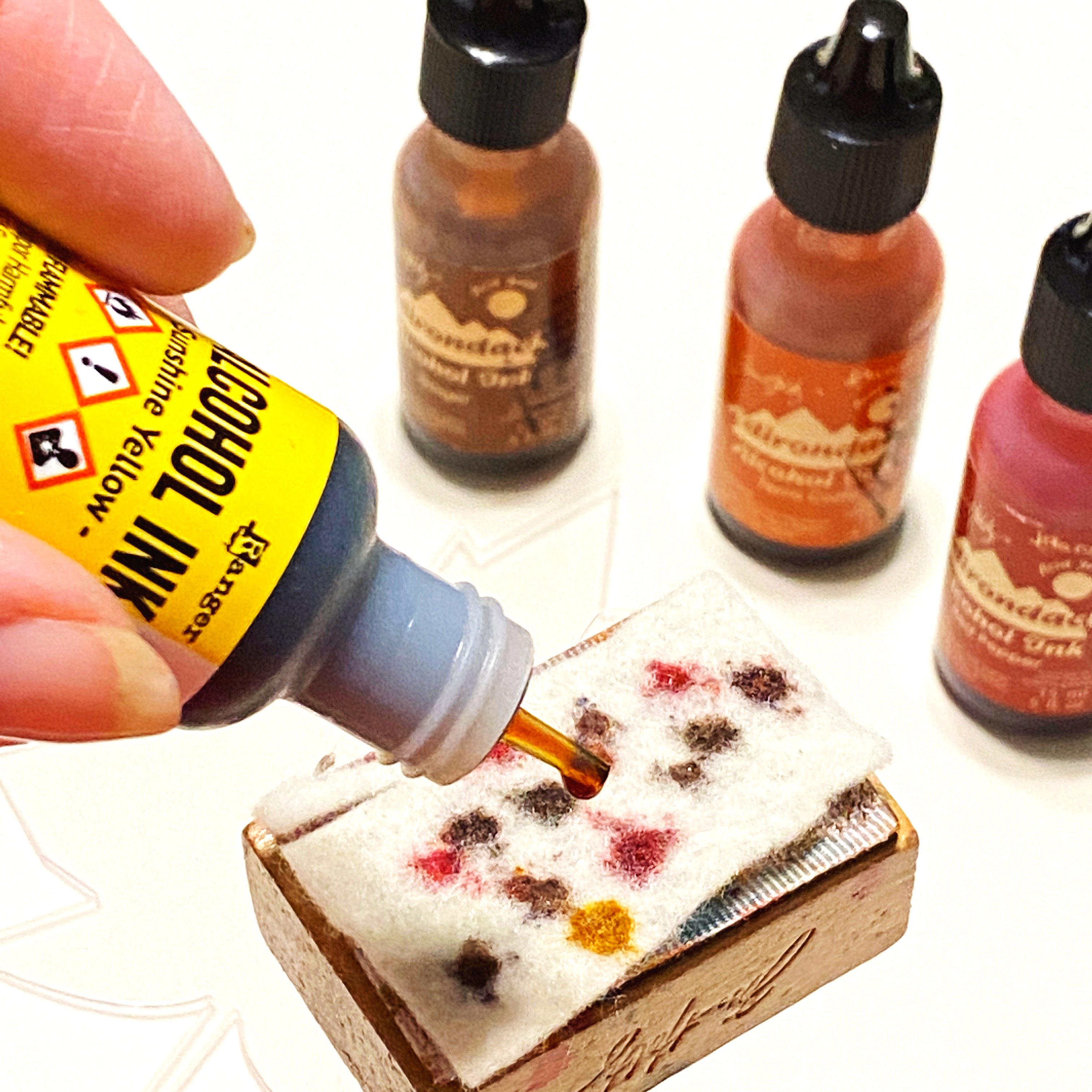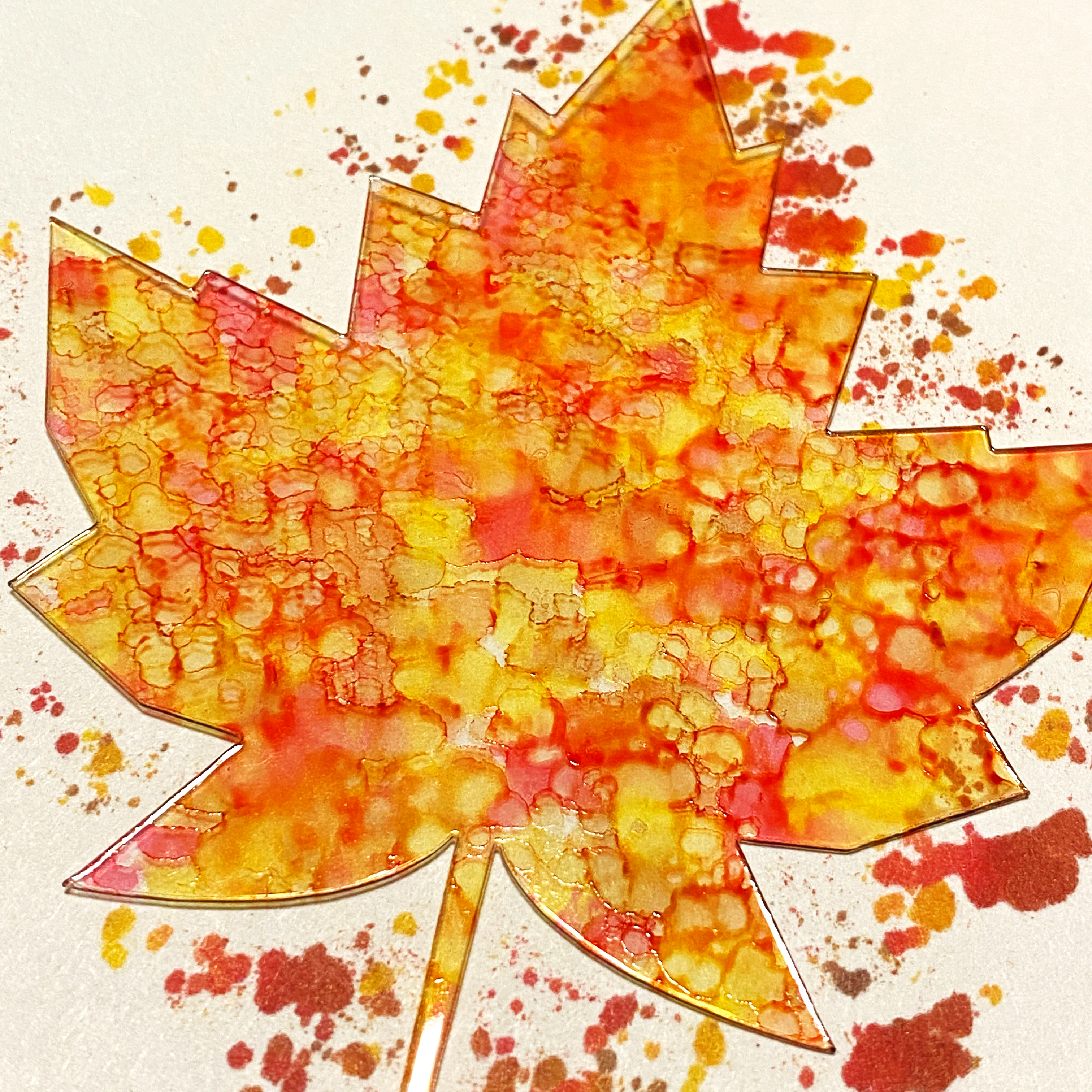 I used several colors of alcohol inks in autumn colors to ink the acrylic piece.