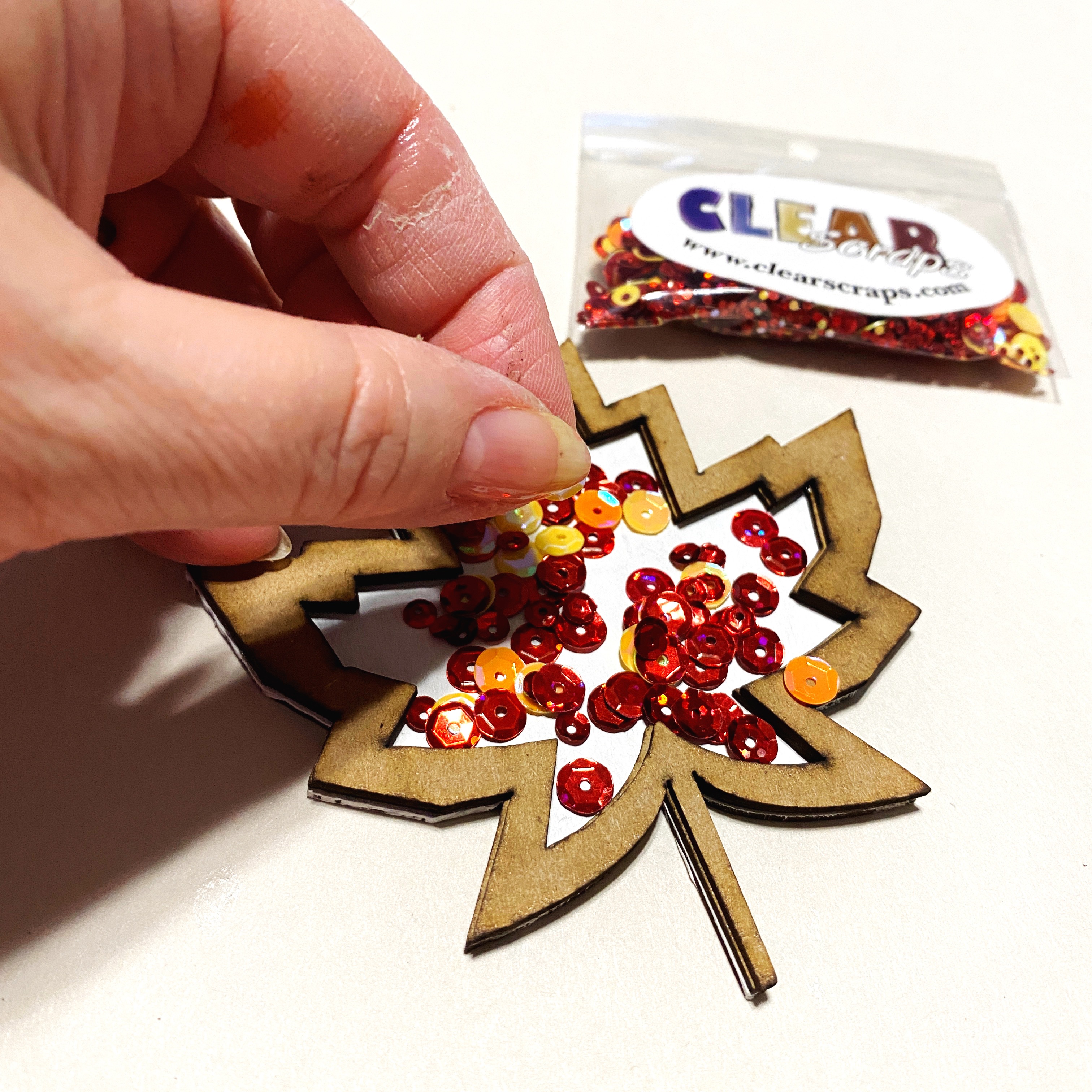 Clear Scraps: Mini Shaker Maple Leaf and Summer Sequins