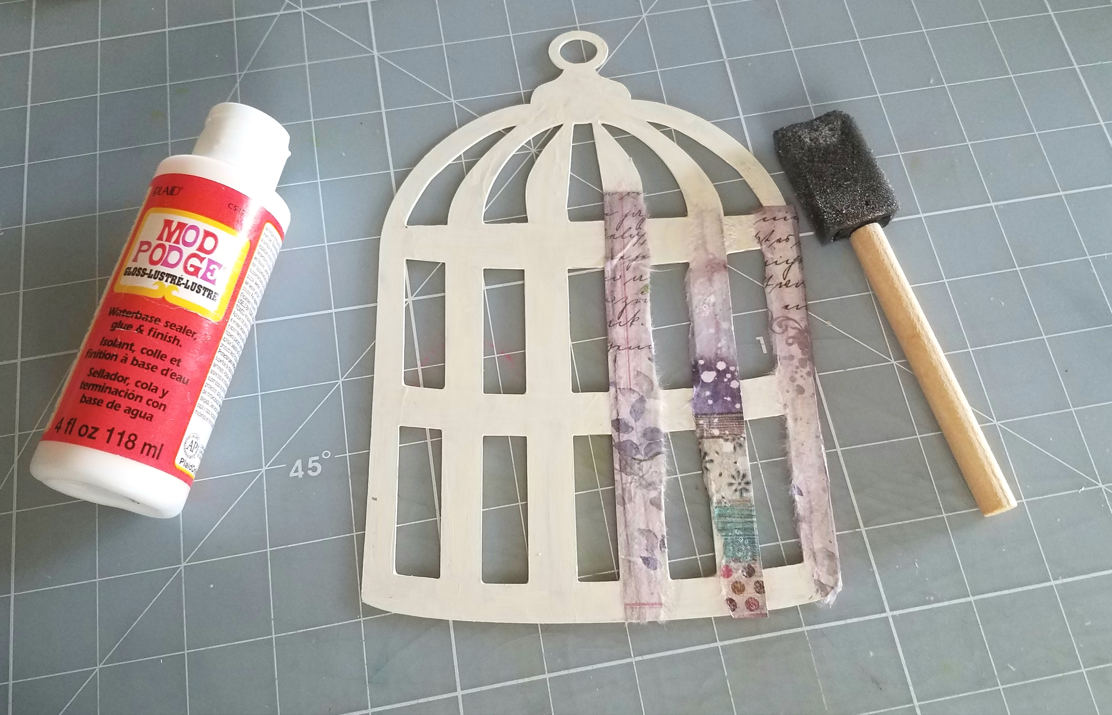 First off you'll want to peel off the protective sheet from each piece of your album. Then I took some white acrylic paint and painted the surface of birdcage album pieces. You don't need a heavy coat of paint since you will covering up most of the surface. Let dry throughly before continuing to the next step.