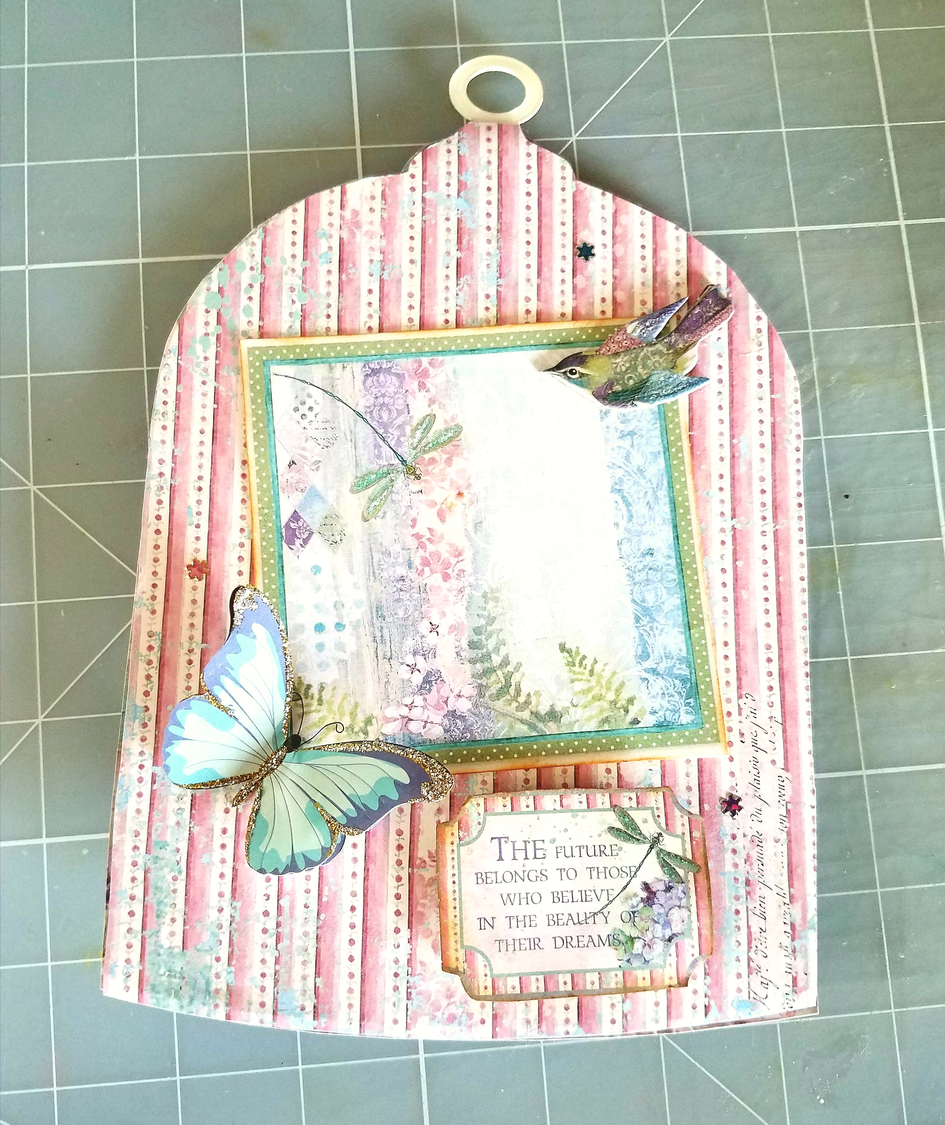 I also uses one of these chipboard Dragonfly pieces to decorate my album Chipboard Shape