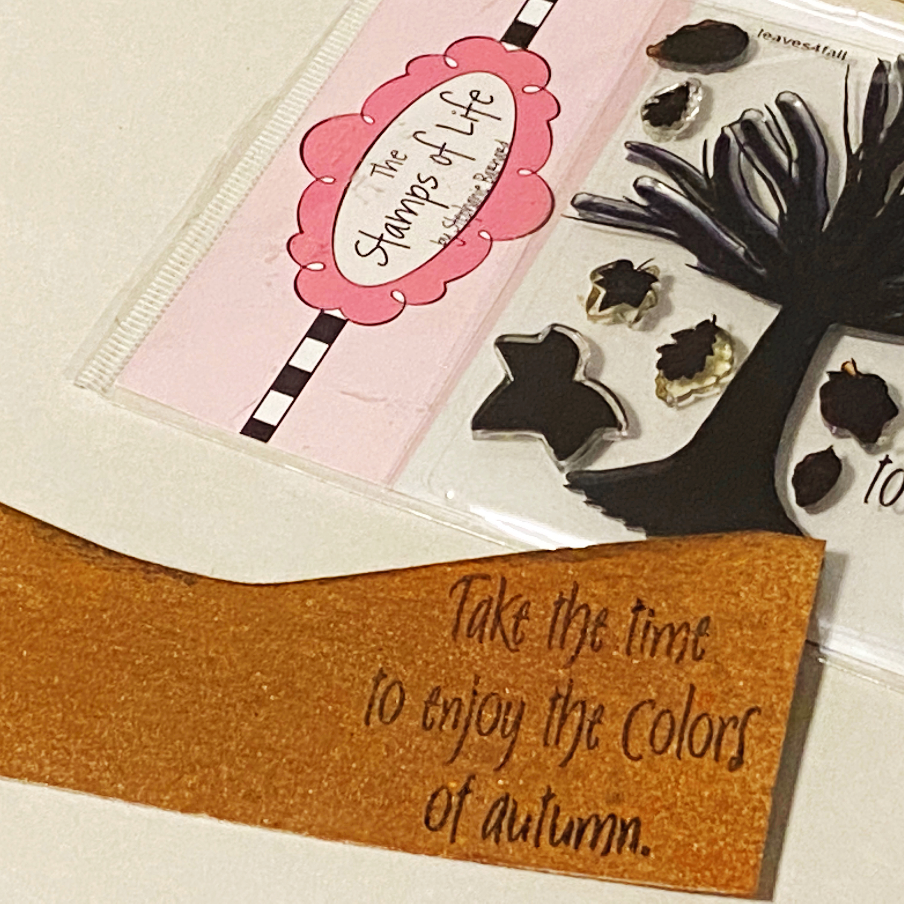 I made by inking cardstock with several colors of pearlized ink, then stamping the leaf pattern over it…