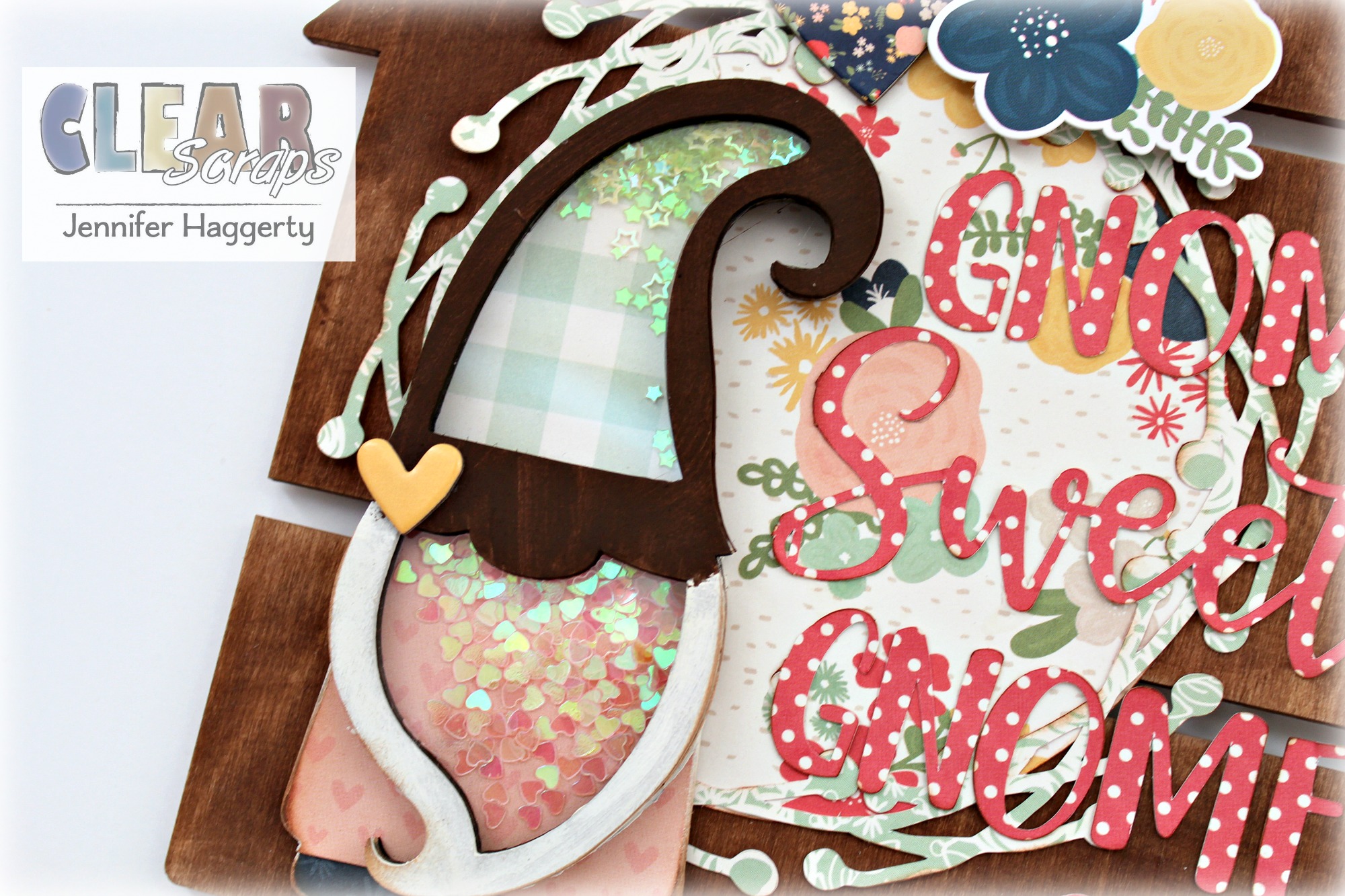 Here is a close up of the finished Gnome Mini Shaker! I added a small chipboard heart to his hat as well as used brown chalk ink around the edges.