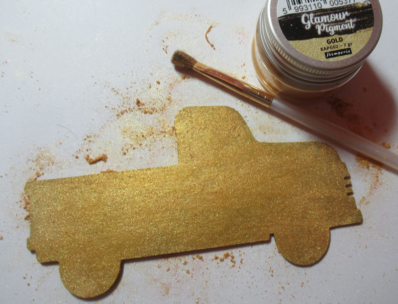 The base truck was painted with gold paint, then I also poured Gold Glamour Pigment on the base panel to give it a little shimmer.