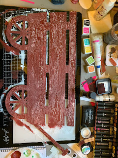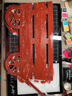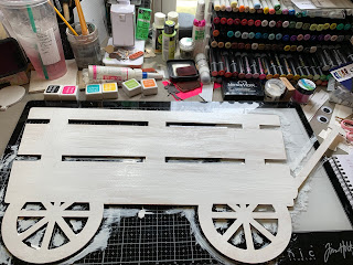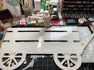 To create your very own wagon, start by base coating your wagon with acrylic paint.