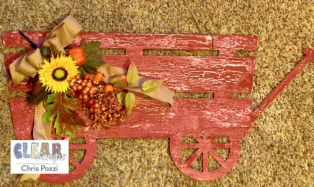 Fall is in the air! so today I am excited to share this adorable Fall decor I created with Clear Scraps XL Wood Wagon. I love how the finished project looks hanging on my door!