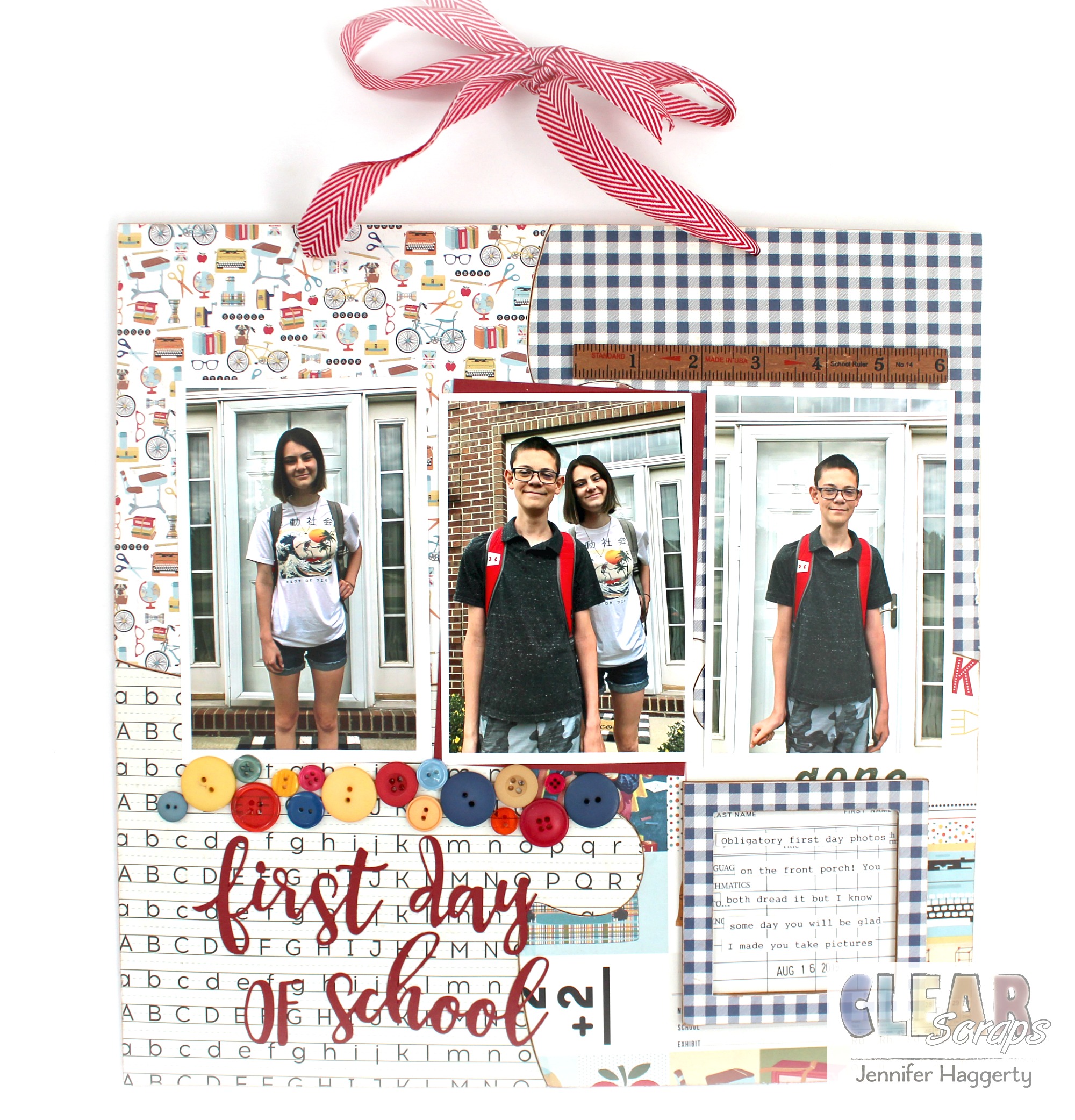 Hello friends! Happy Friday! It's Jennifer on the blog to share a fun home decor project I created with one of the Wood Puzzle Shapes from Clear Scraps! Most students are back to school (in some form or another) so I decided to document my kids' photos from last year! Using the Square Wood Puzzle Shape as my background, I created a layout that would be fun to display every fall!