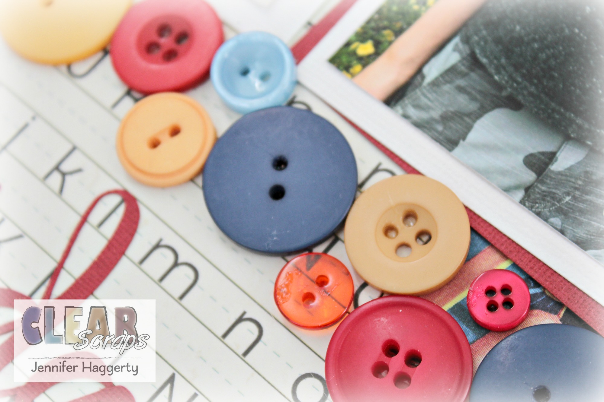 For added dimension, I layered coordinating buttons from my stash across the bottom of my photos. This is a great way to give your project some depth as well as use up those buttons!
