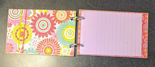 To start this piece, I looked around for coordinating papers to use to cover the inside and back of the card covers. Then I cut down the pieces and used all 0f the scraps on the covers for decoration.