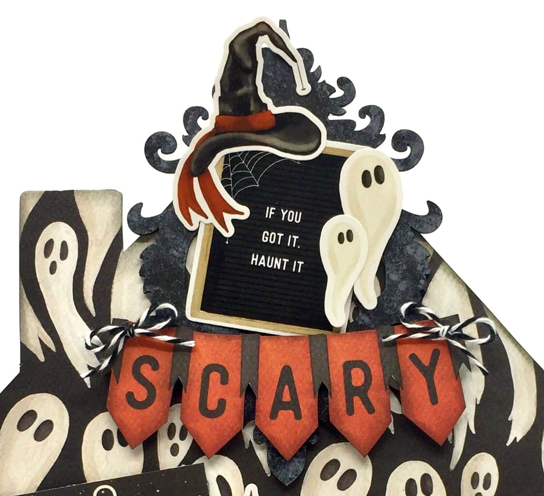 onto the ghost patterned paper, cut it out, glued to the house shape, then added