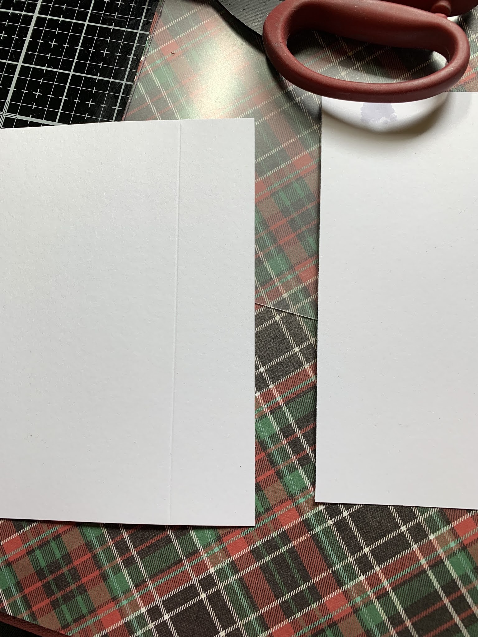 Trim away all but 11/4 inches of card base front. Use a border punch on edge.