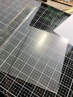 Start by trimming your Acrylic Sheet to fit your card base. Both sides of the acrylic have a protective film on them. I always leave these on during the creation process.