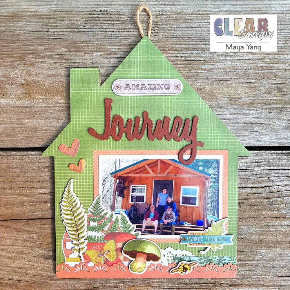 Hello crafty friends and happy October! It's Maya here on the blog today sharing a wood house home decor featuring the Wood House Shape and the Journey Chipboard Word Title. This past May we took a trip to Upstate New York and stayed at a cabin, and this is my favorite photo from the trip. I thought the house wood shape will be a perfect background for a family photo. And yes, I absolutely love how the project turned out!