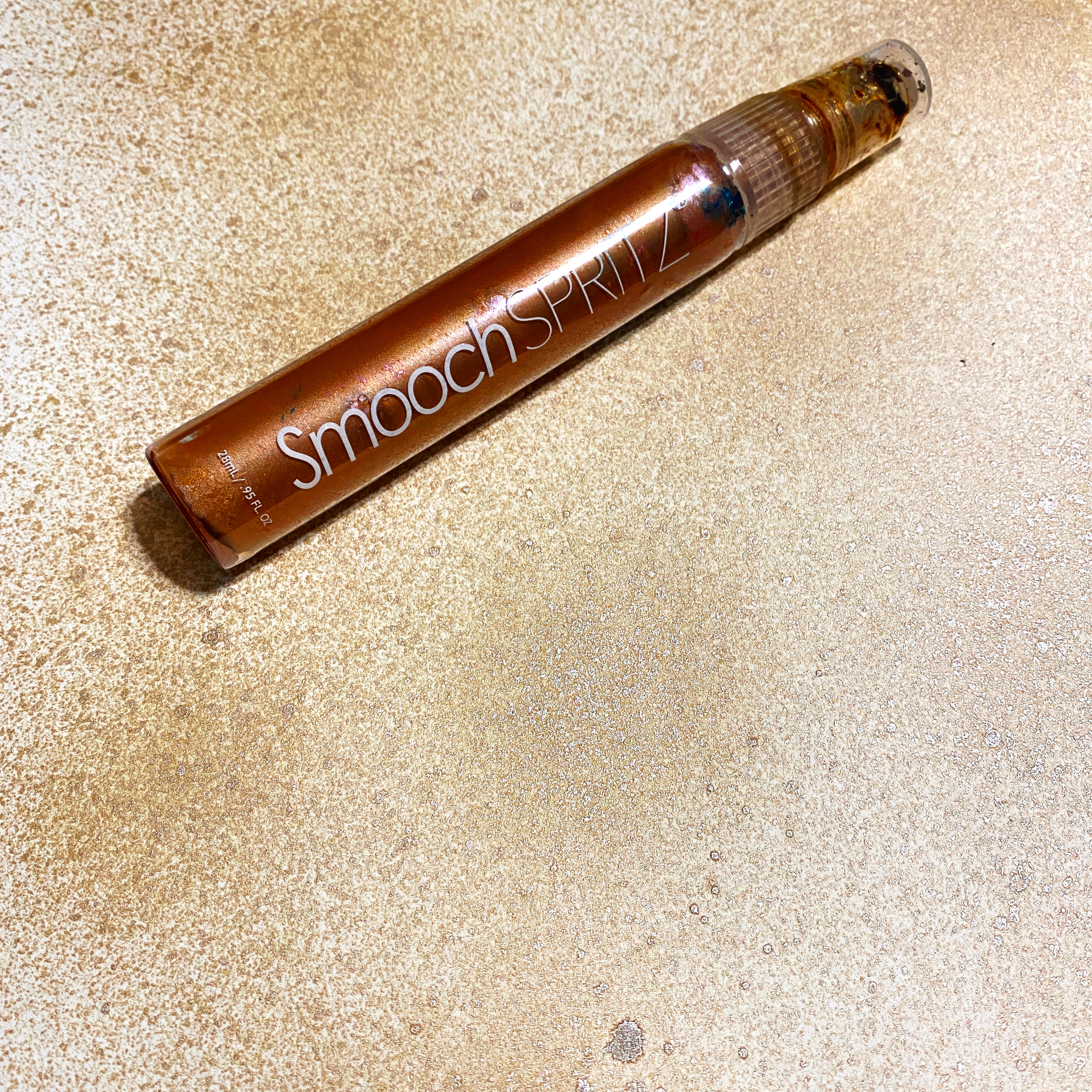 I started the card by creating the background paper to stencil over by spritzing it with a light brown shimmer spray…