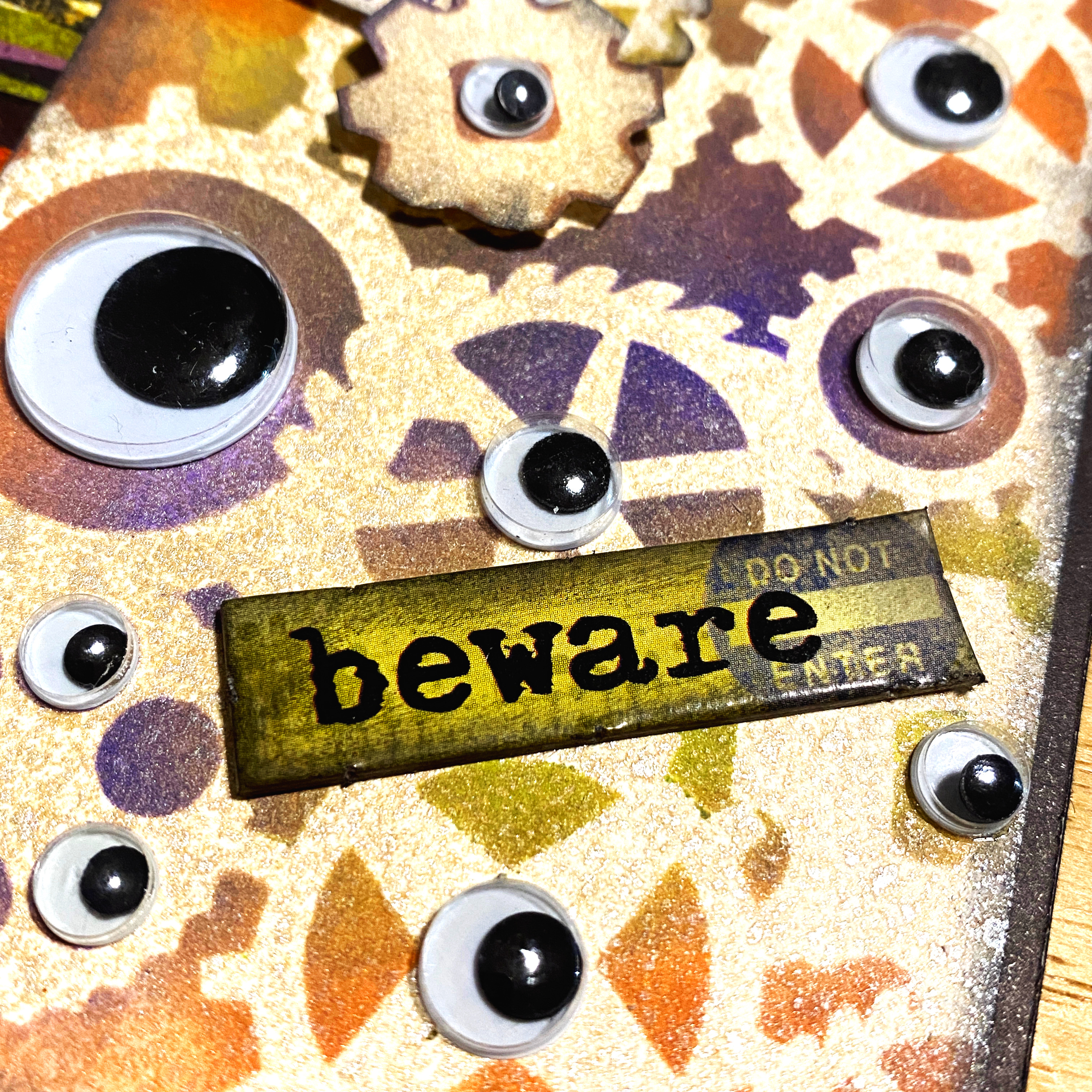 I love the colors of Halloween, especially the combo of Orange, Purple, and my favorite, Lime Green. And something I love to use on Halloween projects is googly eyes; they're fun right? This card combines both of those, with the added theme of Steampunk.