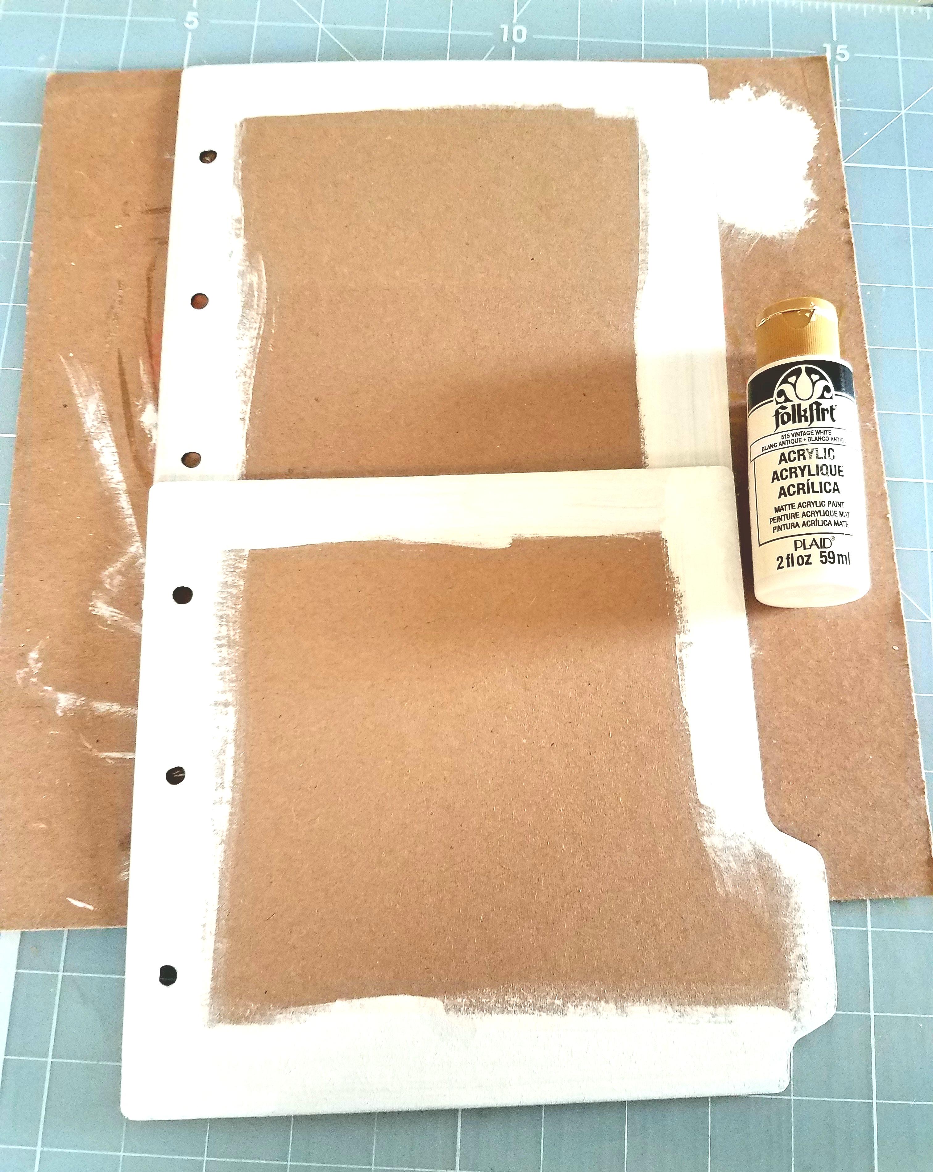 First I painted all the edges of each album page with vintage white acrylic paint. Let dry throughly before moving on to the next step.