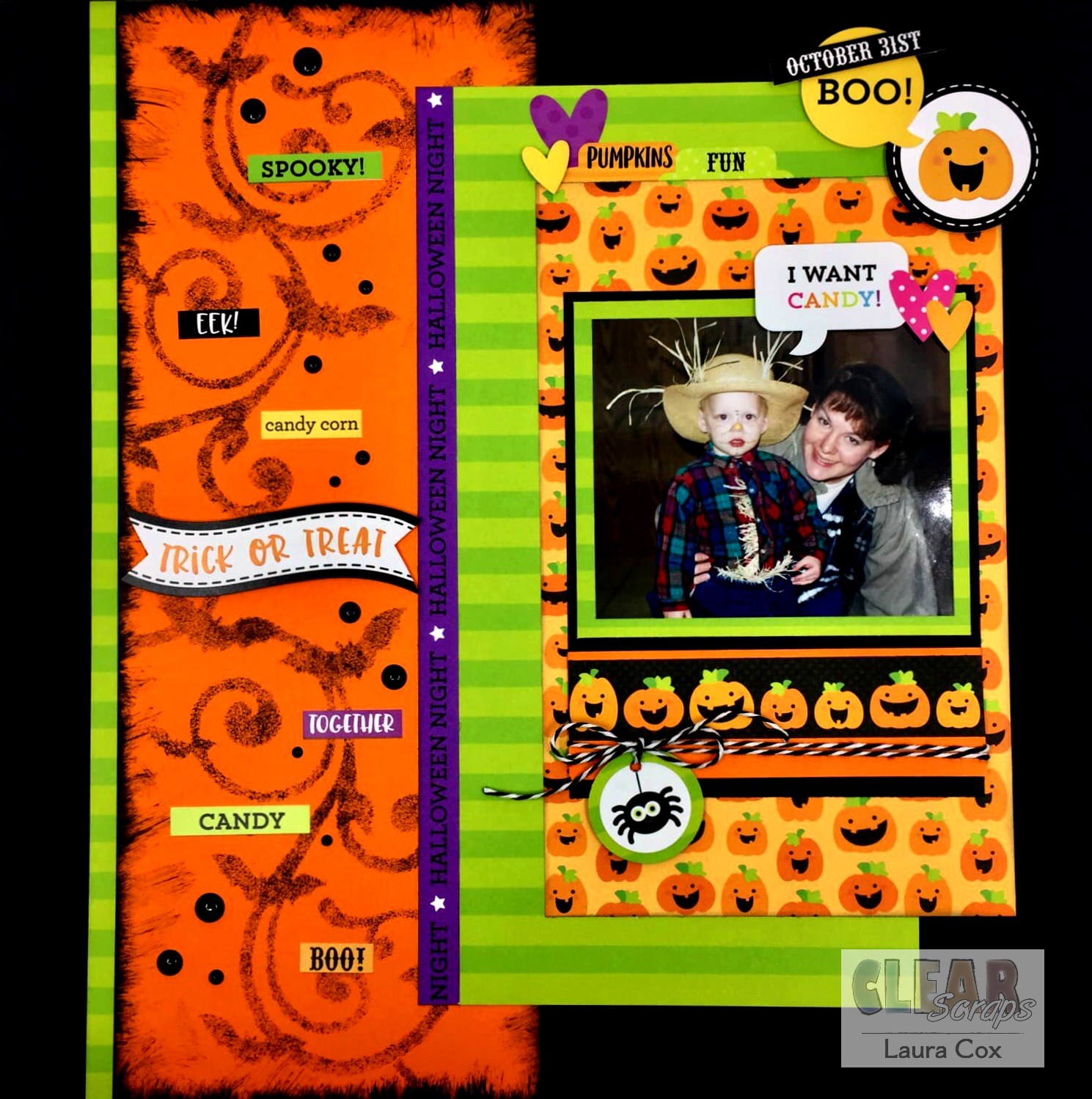 I've got a fun Halloween LO to share with you using the Clear Scraps