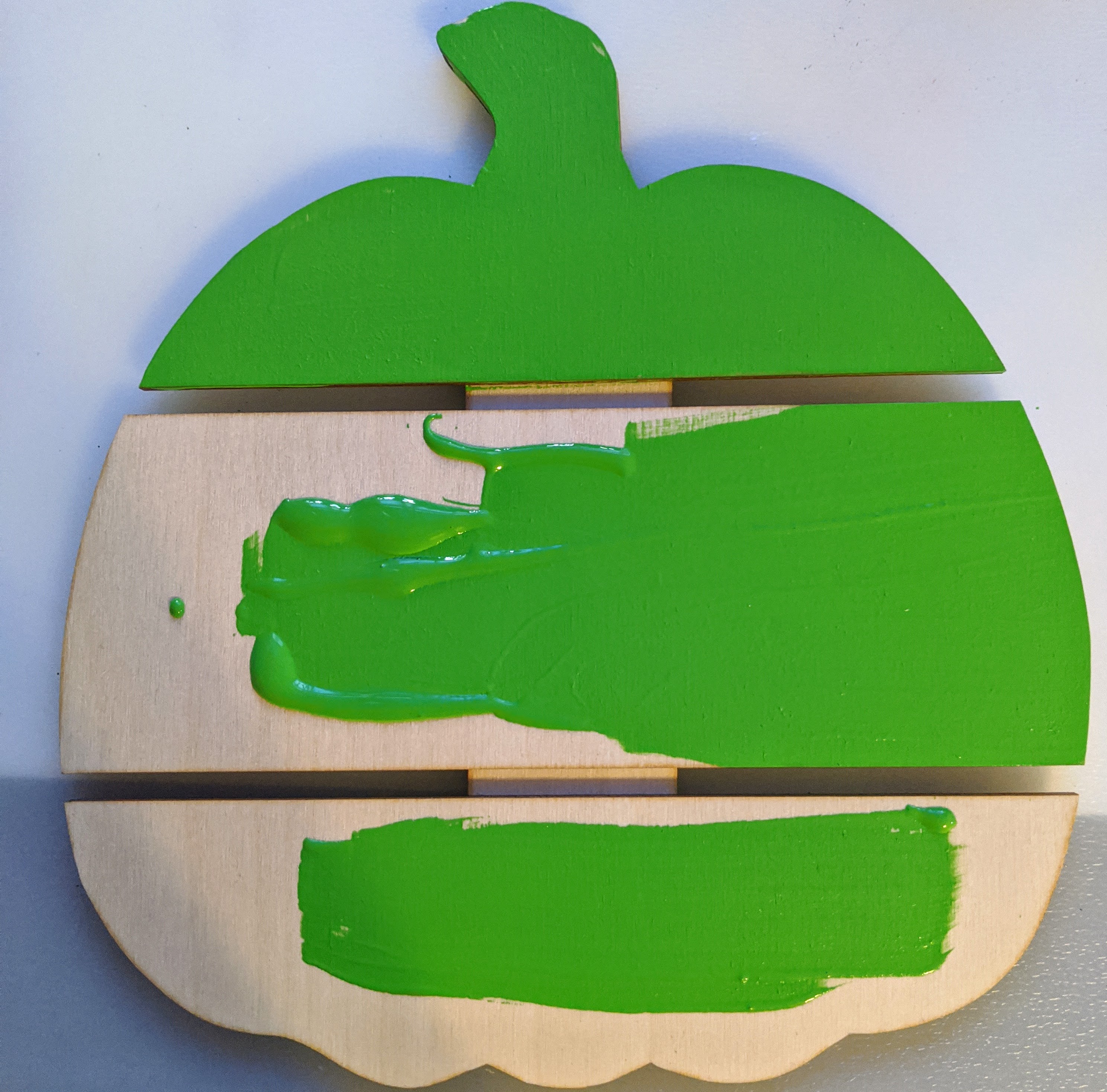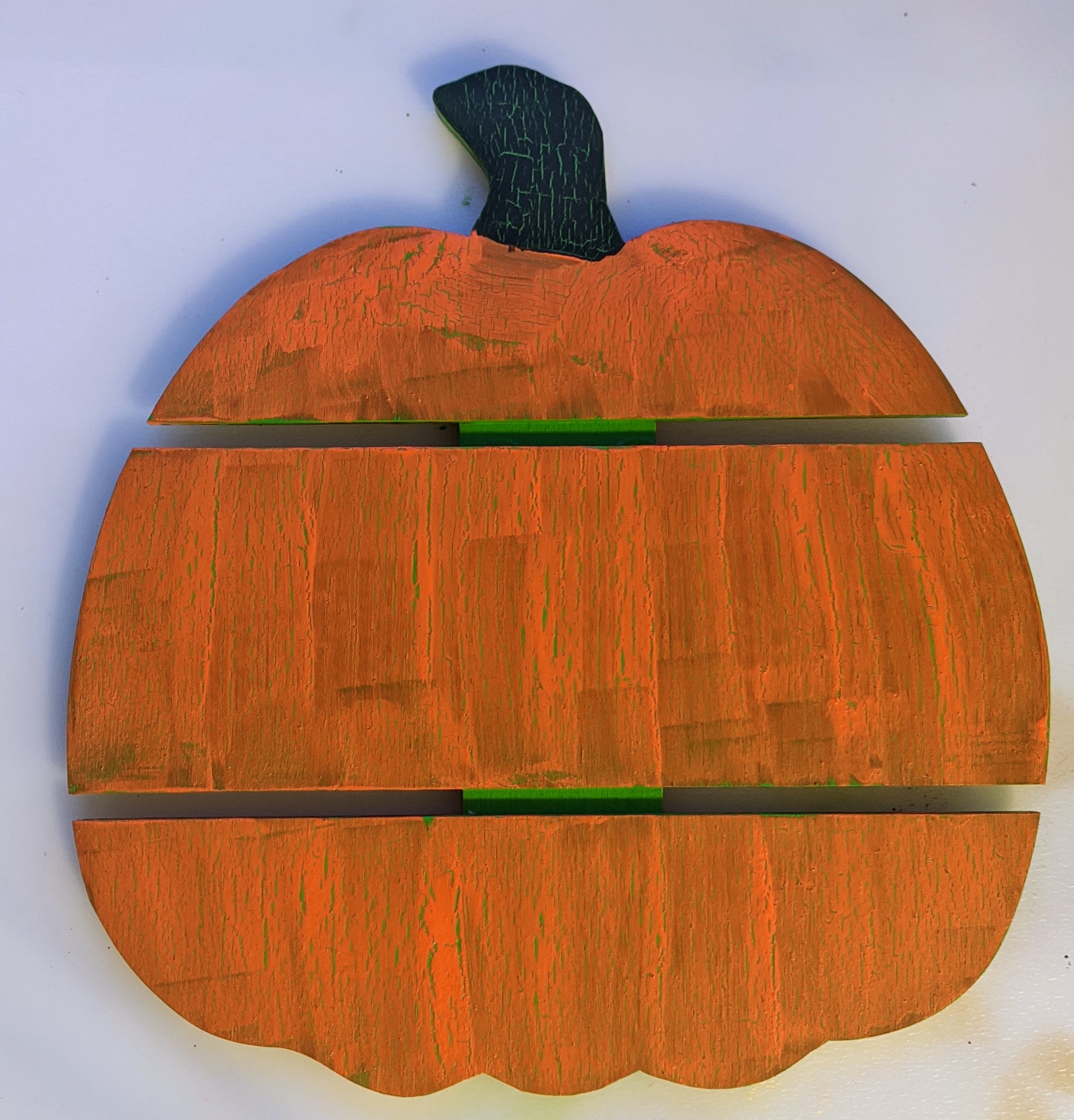 To start this project, I painted the pumpkin in green acrylic paint, when dry, I brushed on the crackle glaze and let that dry overnight.