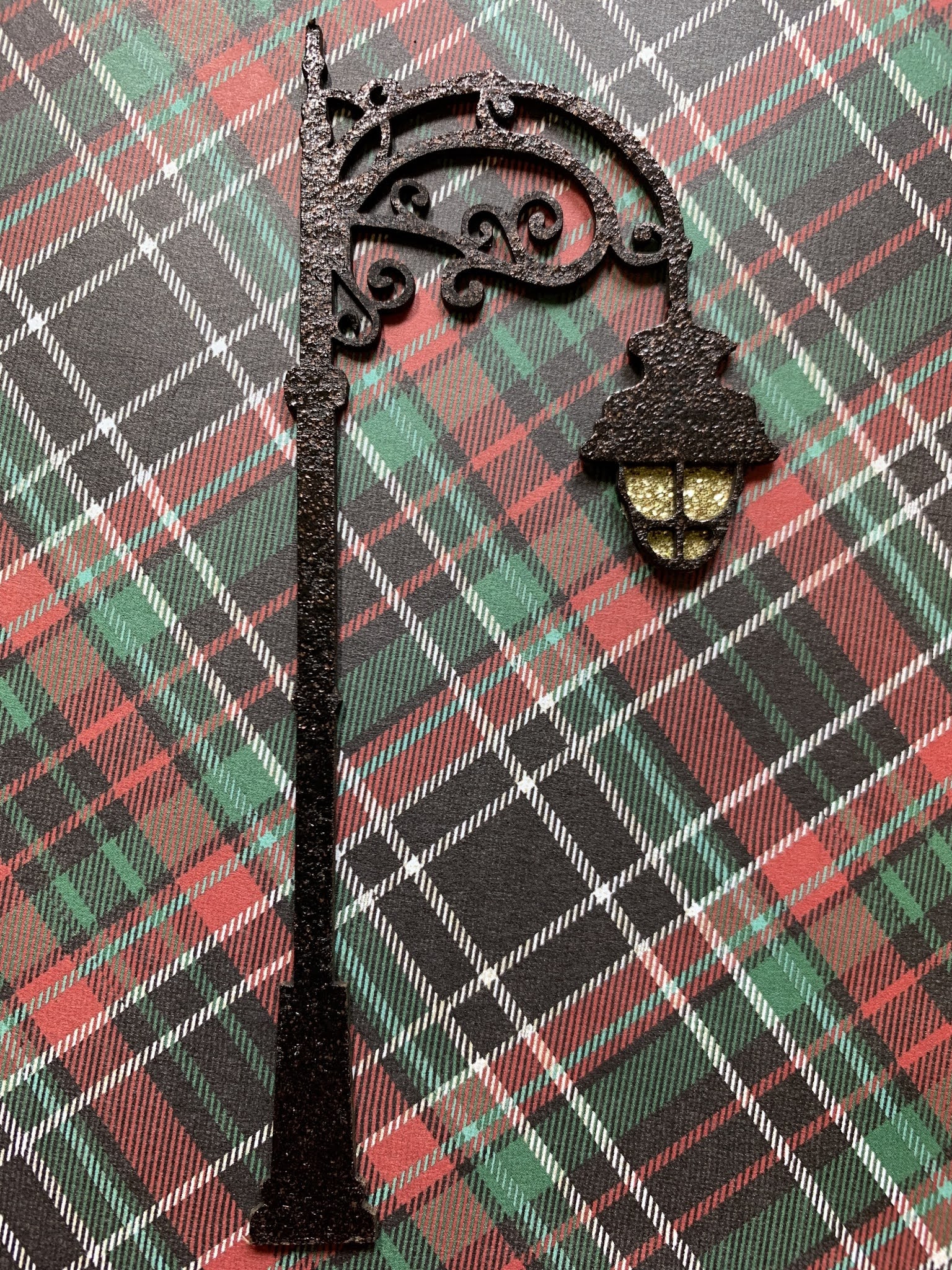 While your tag is drying, Heat emboss street lamp from Clear Scraps Street Lamps Chipboard Embellishments.