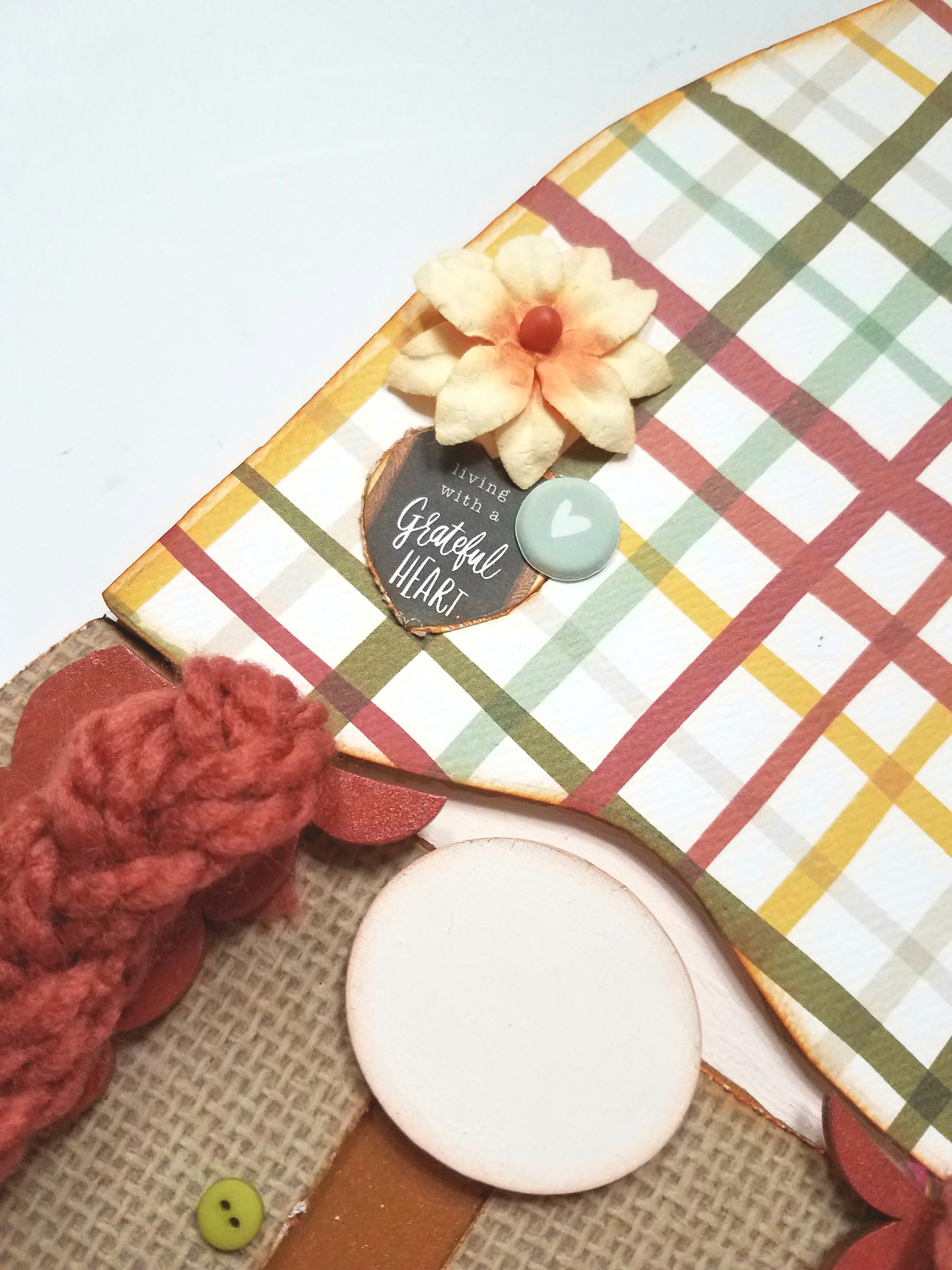 Other Supplies: Tim Holtz Distress Ink, Crate paper "Hello Autumn" papers, acrylic paints, twine, Beacon 3-1 Glue