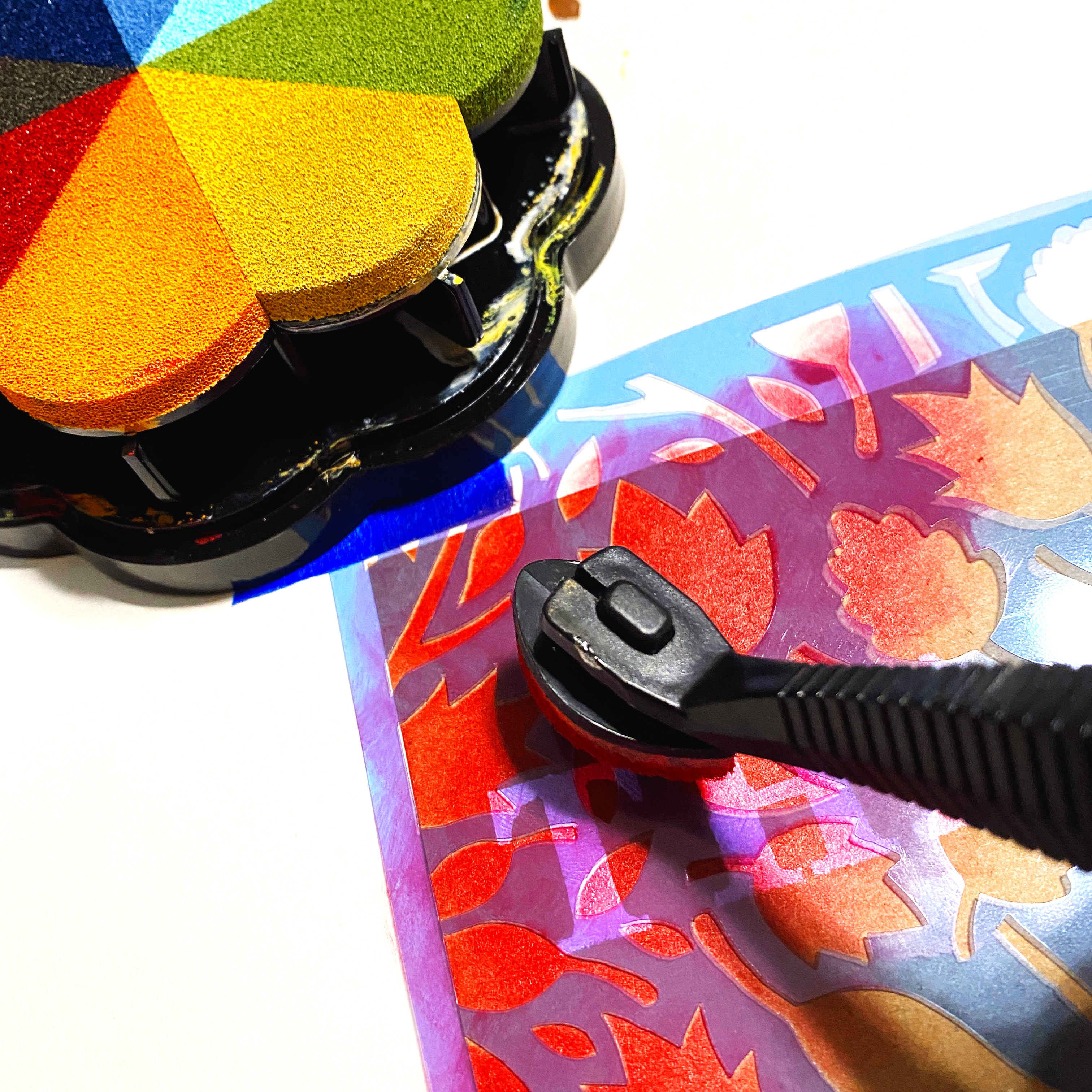 Do the same with the orange and olive inks, overlapping the previous color to blend them a bit…