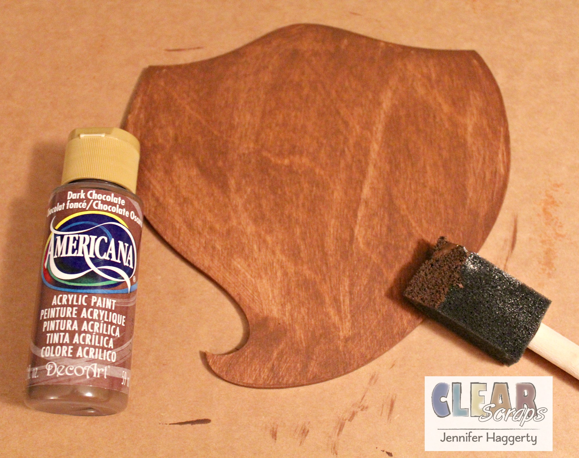 I used the same color of paint on the beard portion again using a small amount to cover the wood.