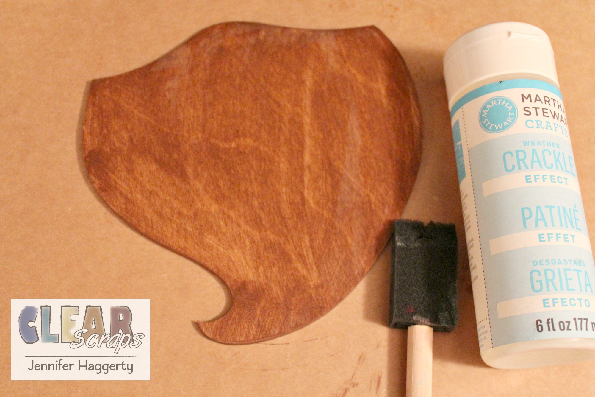 Once my paint was dry, I added a coat of crackle paint to the surface. Once that was dry, I painted the beard with off white acrylic paint. This helps give it some dimension and not look flat.