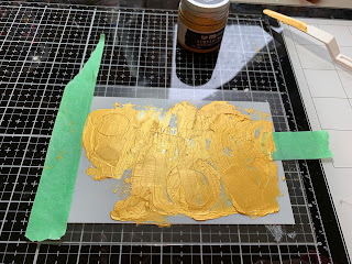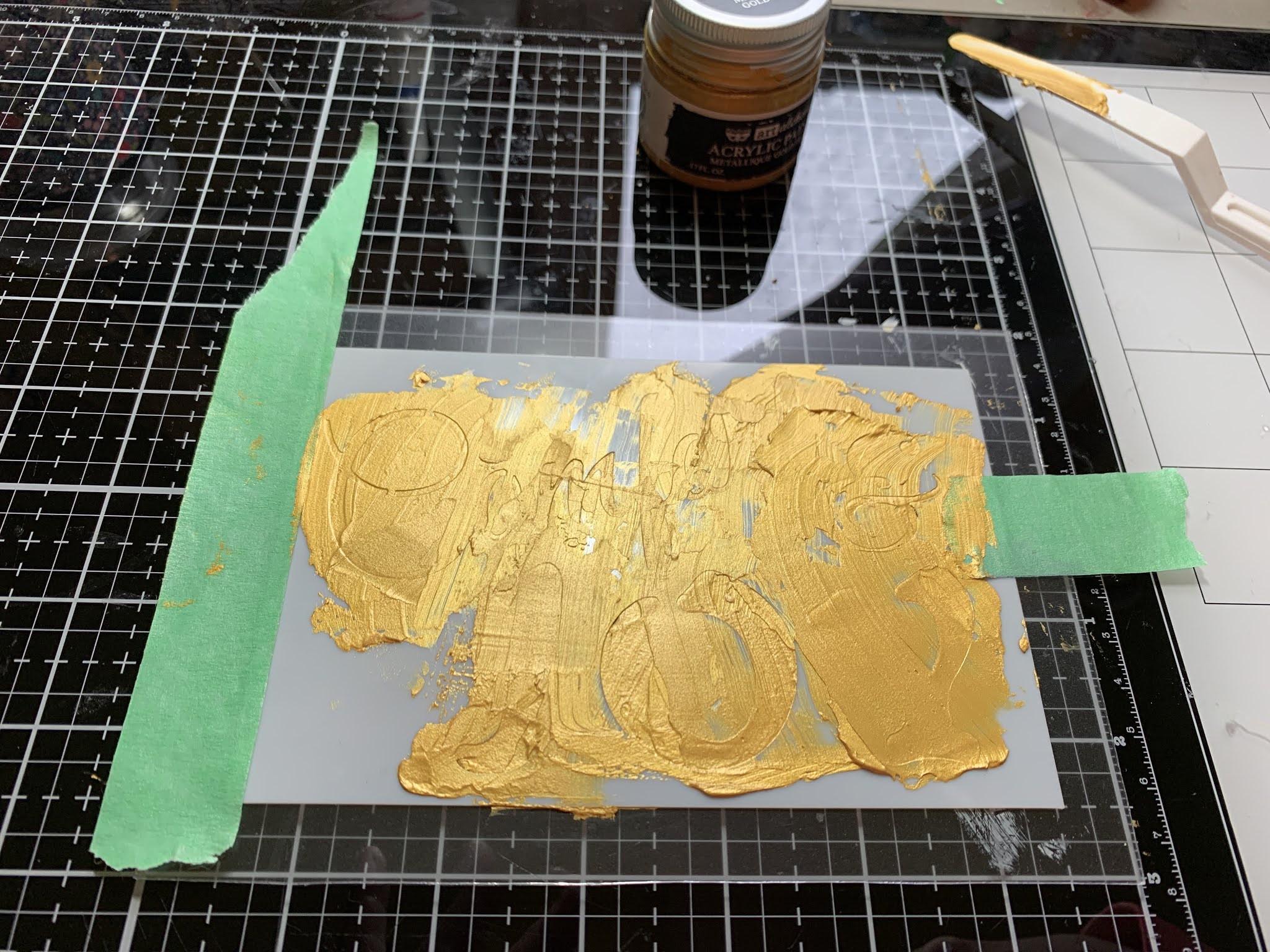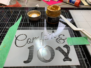 Remove protective cover from acrylic and layer Clear Scraps 4 x 6 Comfort and Joy Stencil onto acrylic.