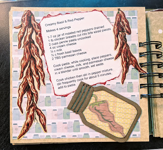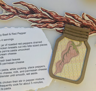 For this project, I used the Mason Jar Chipboard Embellishments and created two pages. For the full jar, I covered it with foodie pape and then used an emery board to smooth out the edges then using ink made it look vintage.