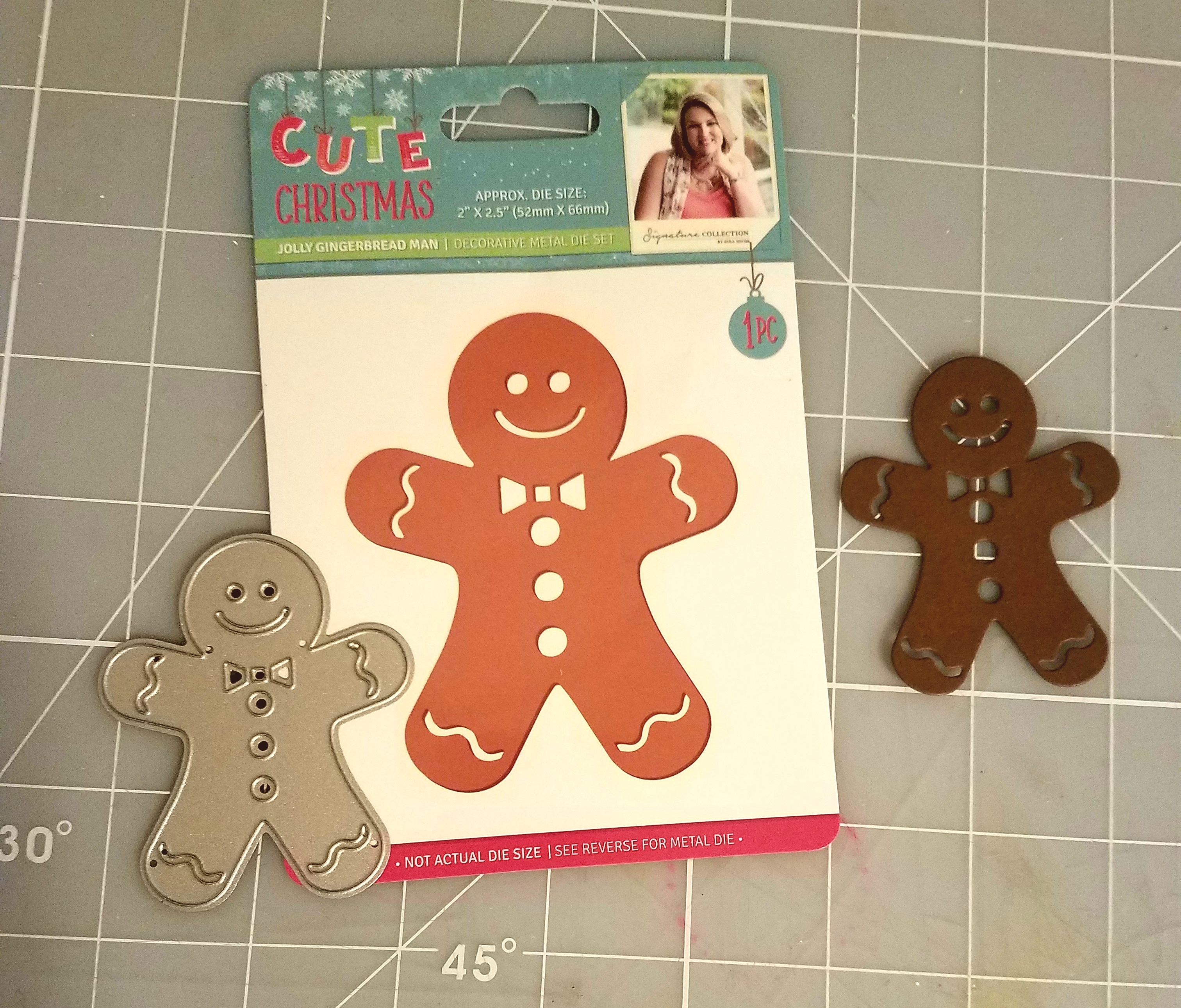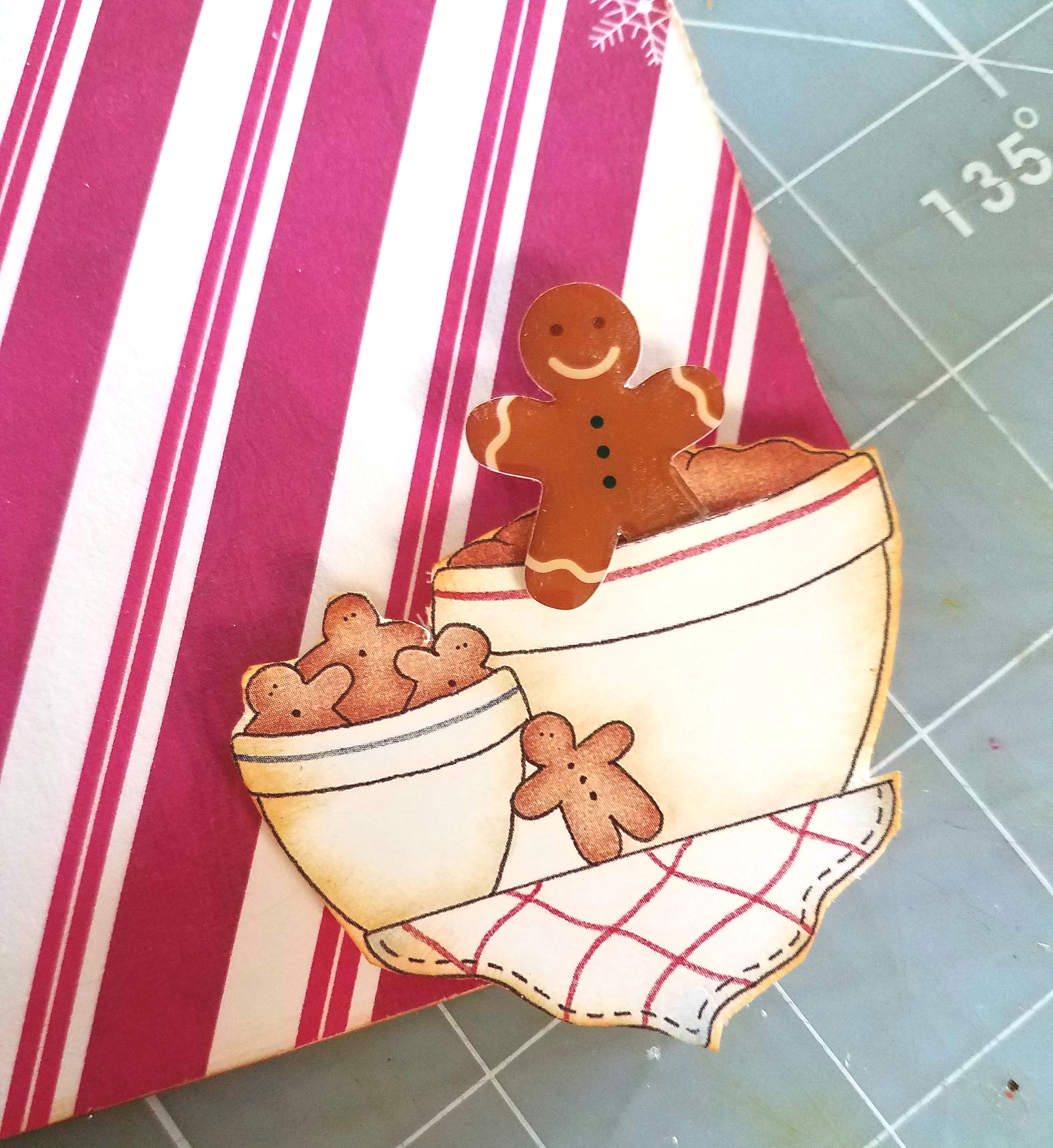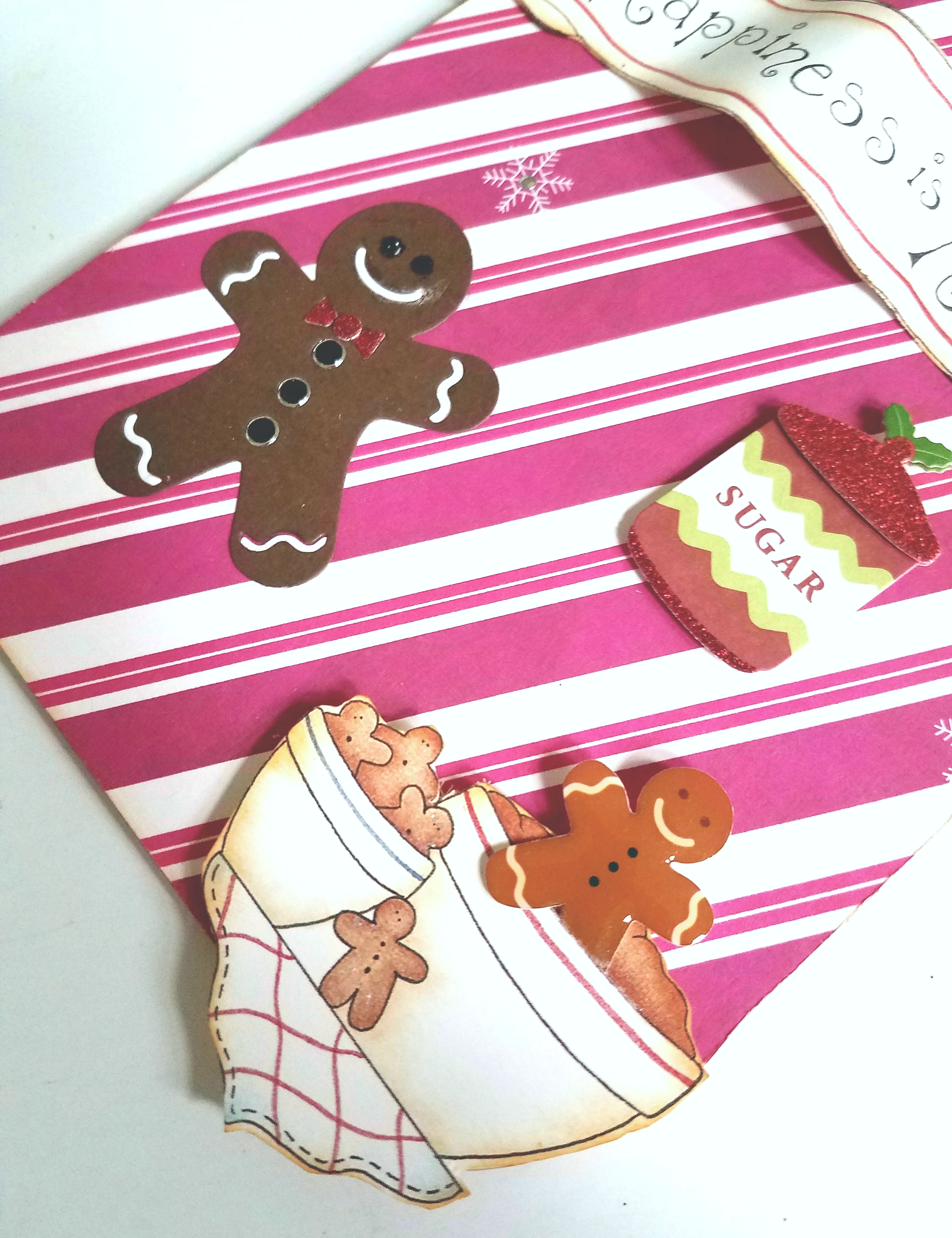 Next I took a gingerbread man die and ran it through my diecutting machine, using assorted papers to decorate my gingerbread man.