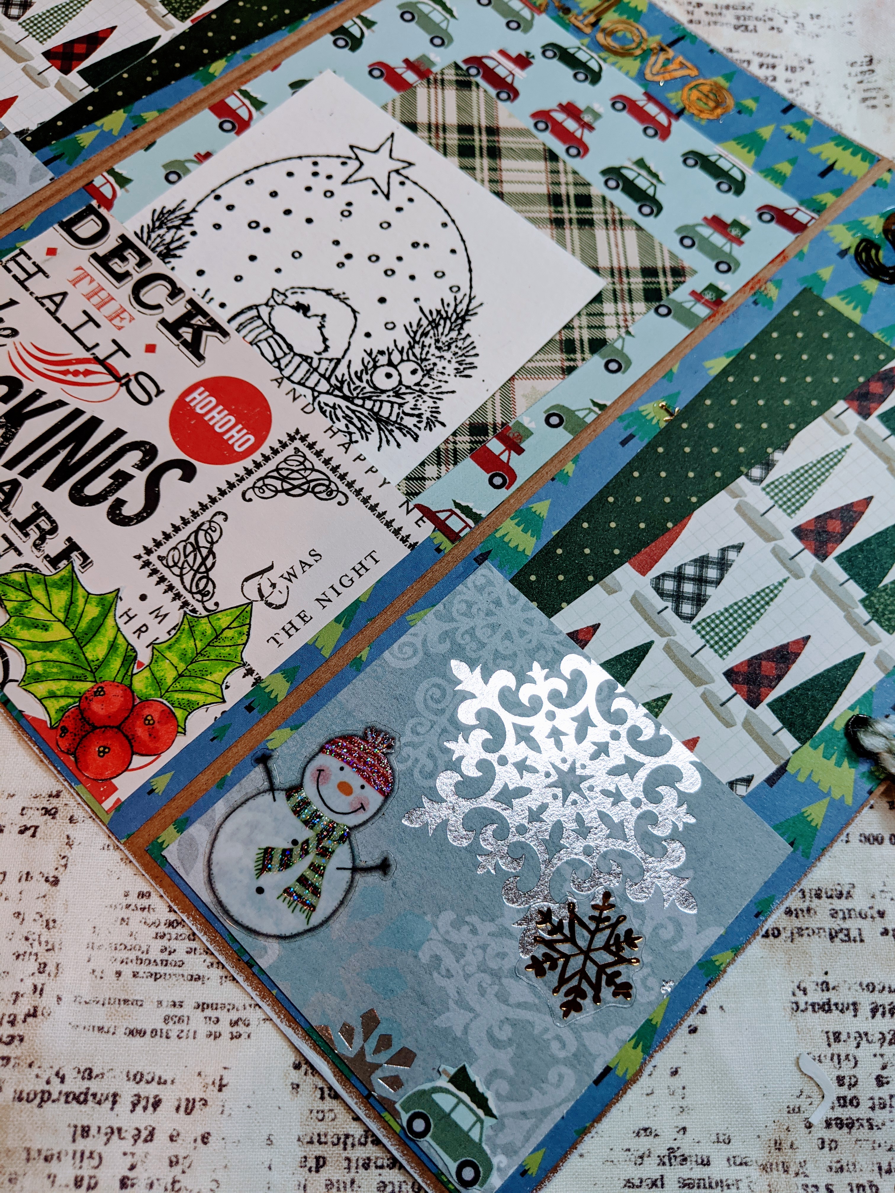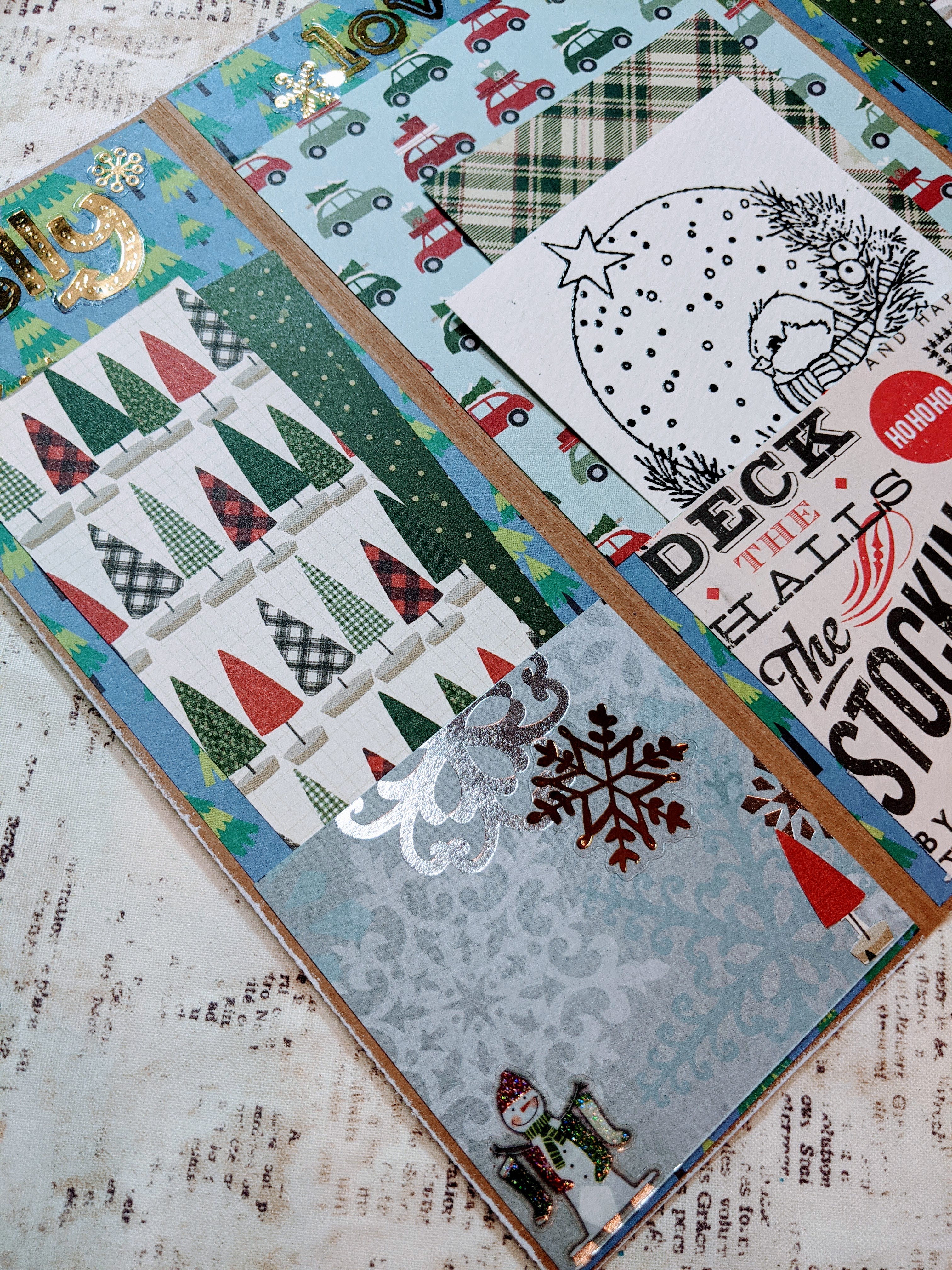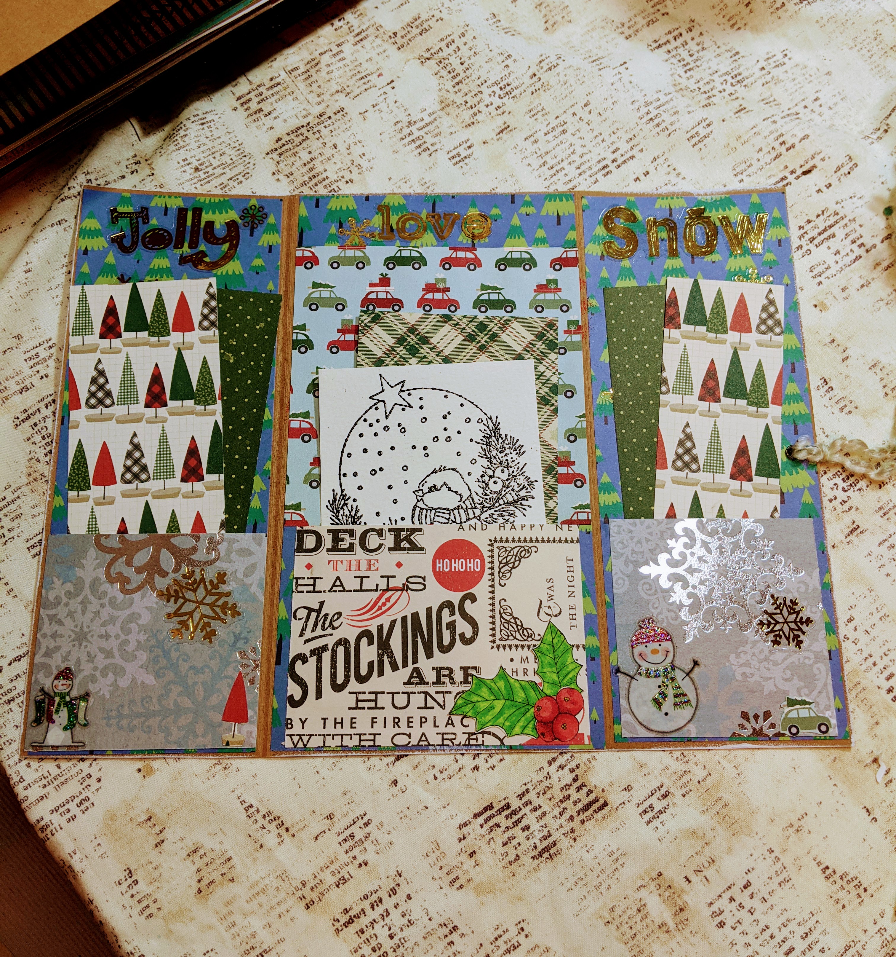 Good morning all my crafty friends, this is Dora, and today we are going to make a simple Folio for Christmas. Here I am using the Snowflake stencil which you can find HERE. I wanted to make something that I could keep my Christmas memories, pictures, and little things I wanted to add to my journals later. I really hop you enjoy this step-by-step process. Let's get started. So, grab out your favorite Christmas papers and embellishments, along with your snowflake stencil. Here is a close up of the finished project where I used the stencil.