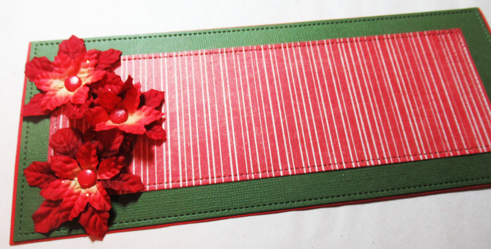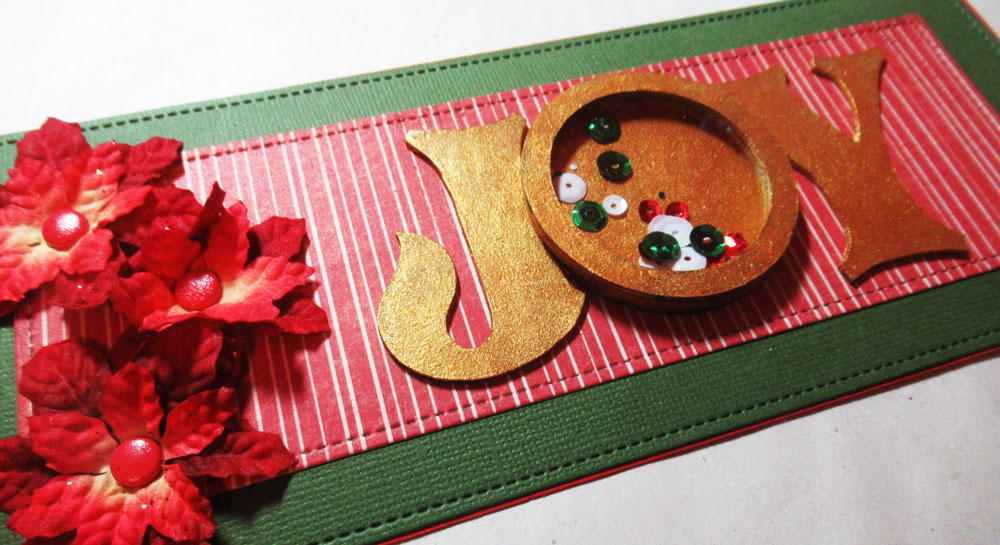 I adhered assorted sized poinsettias to the left side of the card, then put it aside while I finished the shaker.