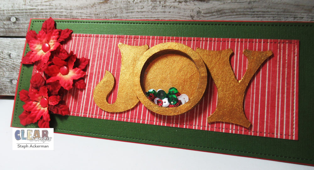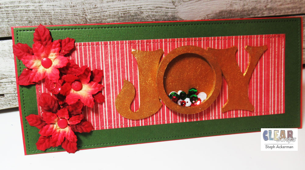 Hi everyone, Steph Ackerman here today. With slimline cards all the rage, I chose to use the Mini Shaker Joy as the focal element.